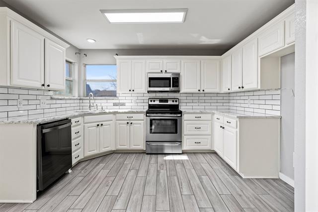 This exceptional 3-bedroom, 2-bathroom home is in immaculate condition and offers a sophisticated living experience in a prime location. The modern kitchen is equipped with high-end stainless steel appliances and ample cabinetry, while a large double window overlooks the spacious backyard, providing a perfect view for daily enjoyment. The inviting living room features a charming wood-burning fireplace, ideal for relaxation. With elegant tile and wood floors throughout, generous walk-in closets, and a dedicated laundry room with built-in storage, this home is both practical and stylish. Located in a highly sought-after area of Crowley, near Main Street and excellent dining, this home offers the ideal blend of convenience and comfort. No smoking or pets allowed. Applicants must be able to provide proof of funds 3 X the rent and submit their completed application with proof of income and 2 forms of official ID. Applicants with good credit and rental history are preferred.