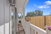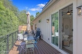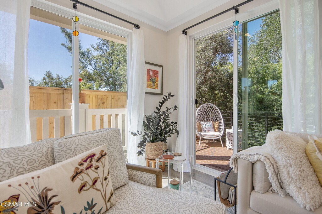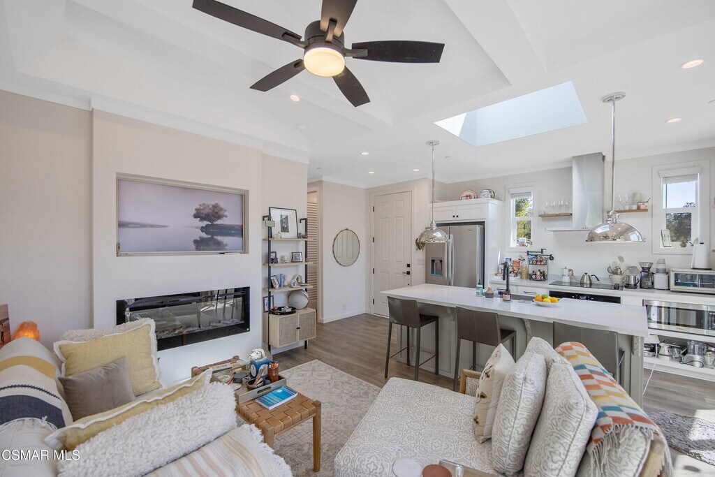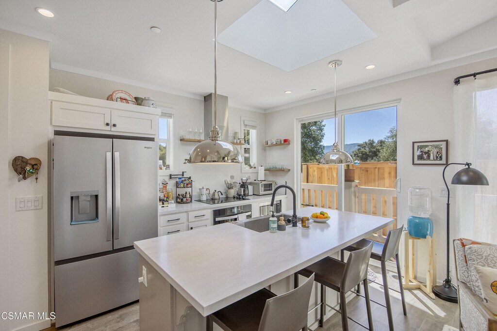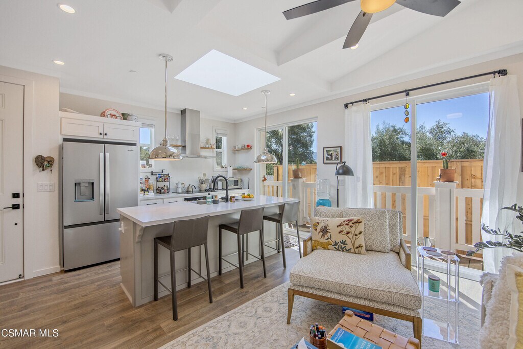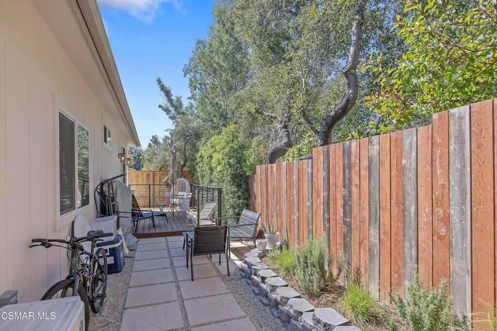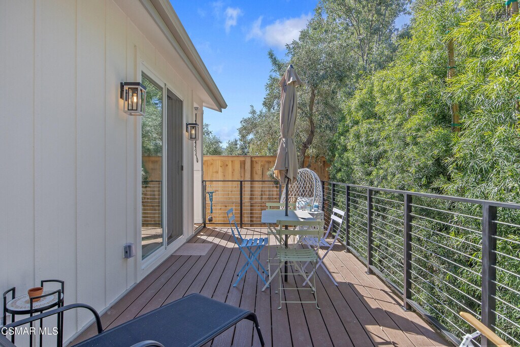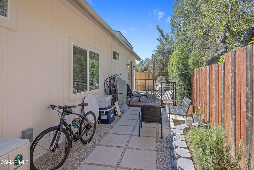 Experience the perfect blend of modern luxury and serene valley living in this stunning, brand-new 2025-built ADU in the heart of Ojai. Spanning nearly 800 square feet, this two-bedroom, two-bathroom home is framed by breathtaking hillside and treeline backdrops, offering the quintessential Ojai atmosphere. Step into a cozy living room featuring vaulted ceilings and unique accent windows that pull in natural light while highlighting the home's sharp architectural lines. A modern fireplace anchors the space, which flows seamlessly into a gourmet kitchen complete with a skylight, large island, breakfast bar, and premium stainless steel appliances, including a refrigerator. High ceilings throughout the rest of the home maintain an airy, spacious feel, complemented by contemporary essentials like central heat and air, a tankless water heater, and a dedicated interior laundry room with a washer and dryer. Large sliding doors lead to your own porch and private patio, a peaceful spot to enjoy the surrounding mountain scenery. This residence also features its own private entrance and a large uncovered parking area. Located just moments from the charm of Ojai's Main Street, world-class dining, and scenic trails, this exceptional property provides the tranquility of a private oasis with all the modern touches of a newer build.