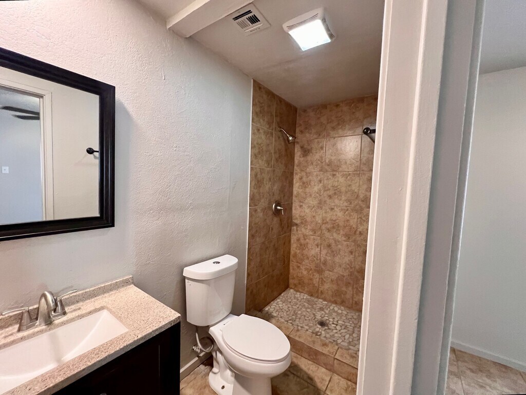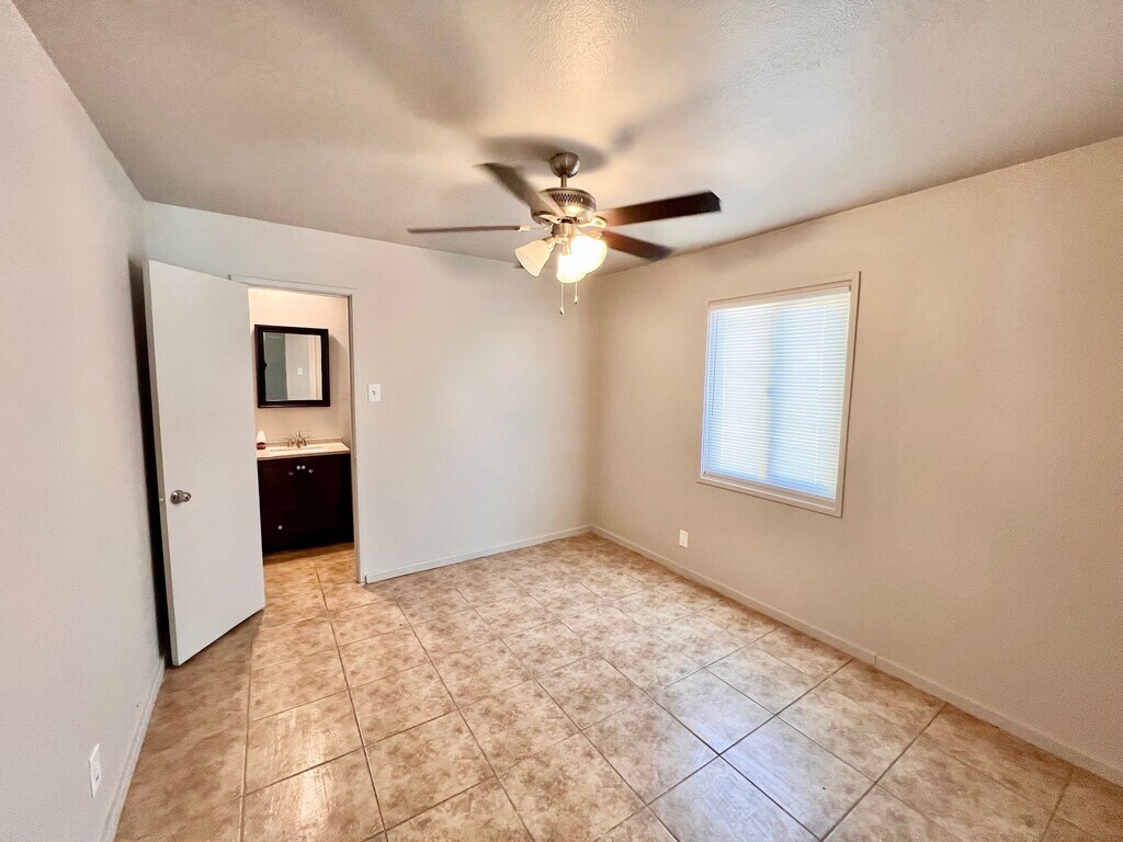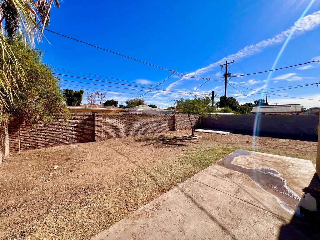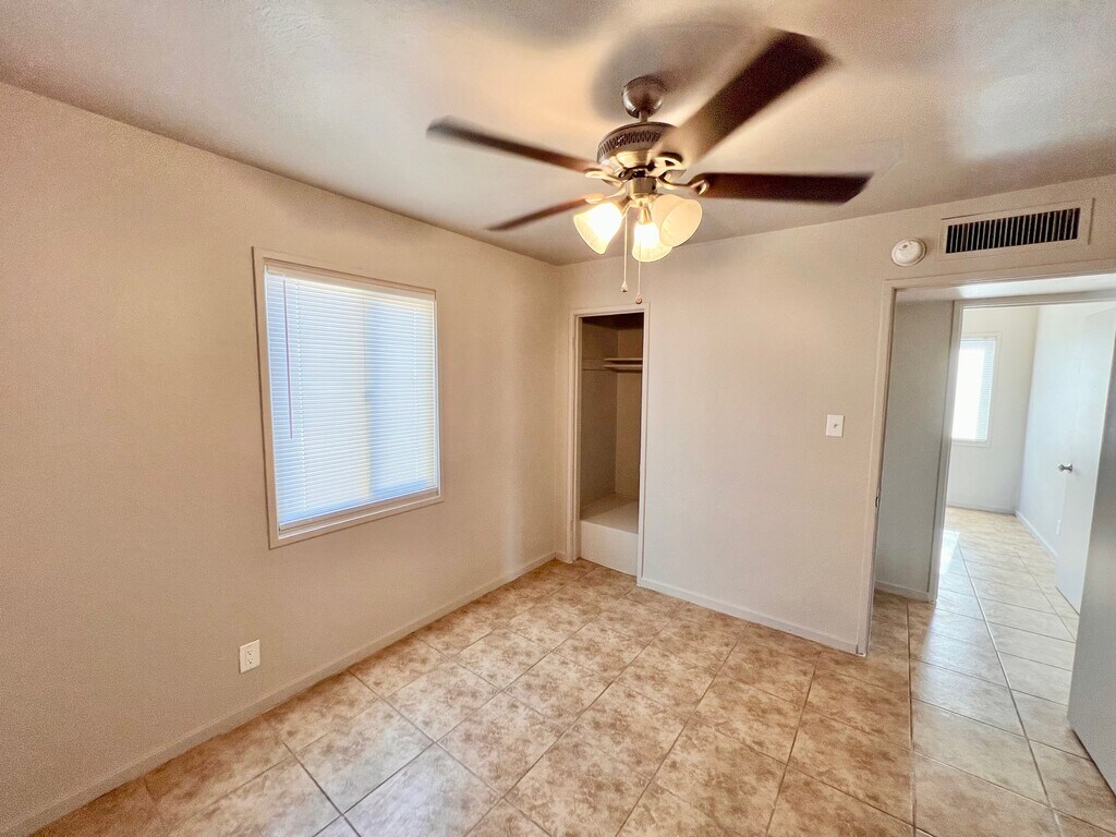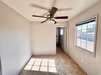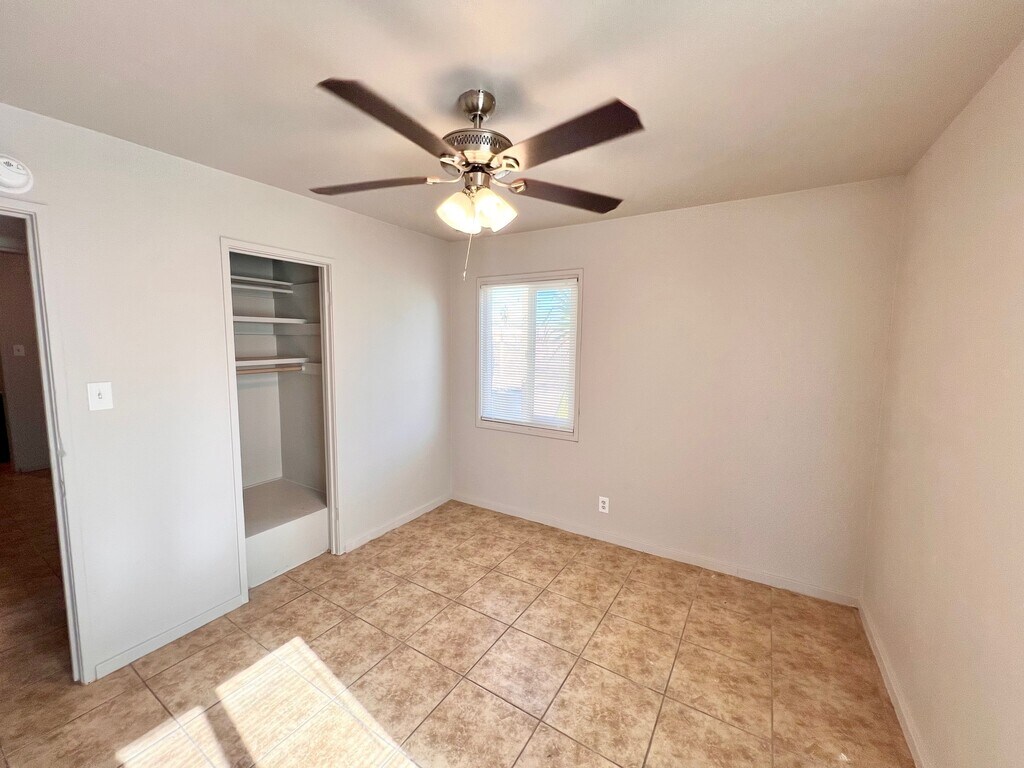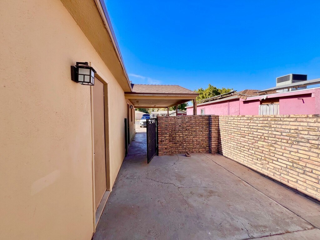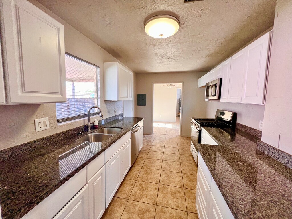 Large 3 bedroom 2 bathroom home with great upgrades. Ceramic tile throughout home including bedrooms. Large remodeled galley kitchen featuring stainless steel appliances as well as beautiful granite countertops. 3 Large bedrooms with ceiling fans and window treatments. Large private fenced back yard with access from the carport as well as the house. Separate office den in addition to a large laundry room for tons of storage.
