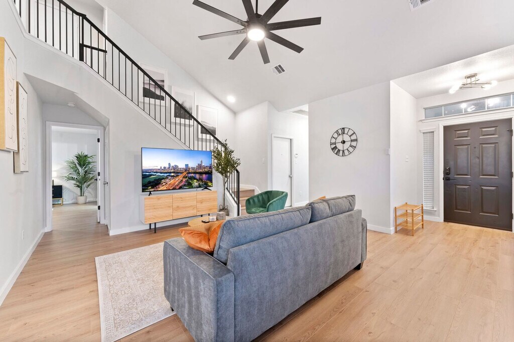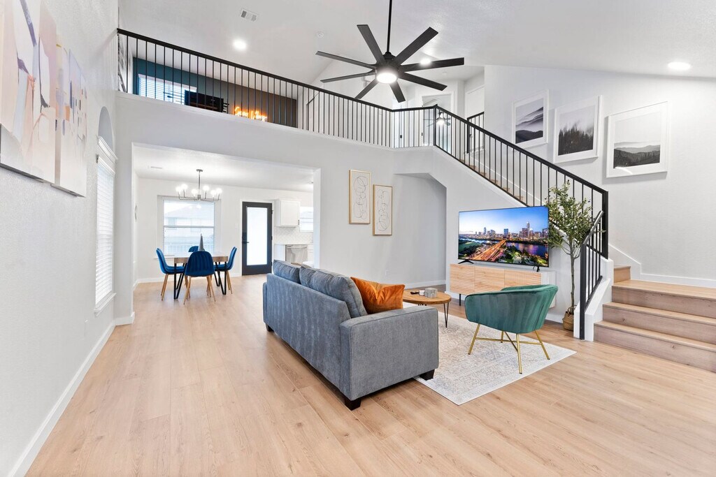 The advertised rate of $5,359/month is the lowest available price, based on a 1 month(s) stay with a move-in date of April 20, 2026. Rates vary depending on the duration of stay, season, and other parameters. For exact pricing and additional pricing components, please visit our website and enter your desired move-in and move-out dates. The rate is applicable when billed upfront; it can be higher if billed in multiple payments. Feel at home in this modern and cozy 2-story home on the edge of Austin. This 1,785 sqft home features 3 bedrooms and 2.5 bathrooms. This home comes with a fully stocked kitchen, an open-space floor plan, and an en-suite laundry with a washer and dryer. The fully equipped kitchen includes pots and pans, bakeware, dinnerware, silverware, cookware, a blender, and a toaster. Enjoy complimentary coffee and tea with a Keurig machine and pour-over coffee. Relax in the comfortable living room and game room, and enjoy the backyard patio with a propane BBQ grill. Pets are welcome with a fee of $25 per pet per night for stays of 1 to 4 nights, $200 per pet for stays of 5 to 29 nights, and $300 per pet per month for stays of 30 or more nights. Located just north of Austin in Pflugerville, this home is a short drive from The Domain and Kalahari Resort. The Domain is a 15-minute drive, Downtown Austin and the airport are a 22-minute drive, and Kalahari Resort is a 19-minute drive. This area is known for its beautiful trails, stunning lake, tons of shopping and restaurants, and affordable homes. Being at the center of all the action around the north side of the Austin Metro Area, you can drive to any of the popular Austin destinations within 30 minutes, even with moderate traffic. Only 4 cars are allowed to be parked at the house at any given time. Smoking, parties, and excessive noise are not allowed, and smoking violations are subject to a $1,000 fine, which includes the cost to clean, deodorize, and repair damages. Quiet hours are between 10 PM and 8 AM. Guests will be charged in full for any damages or for any violations of the house rules. Check-in is at 4 PM and checkout is at 10 AM. Guests who stay beyond their designated checkout time or delay the housekeeping staff are liable for any associated costs and expenses, up to $75 per hour after 10 AM. Pets must be disclosed on the reservation and approved in advance, and undisclosed pets will be charged at $200 per day. Includes three separate work areas with wide desks and comfortable chairs for remote working, and ultra-fast Wi-Fi (AT&T 1 gig fiber plan) with WiFi6 router technology. [SI]