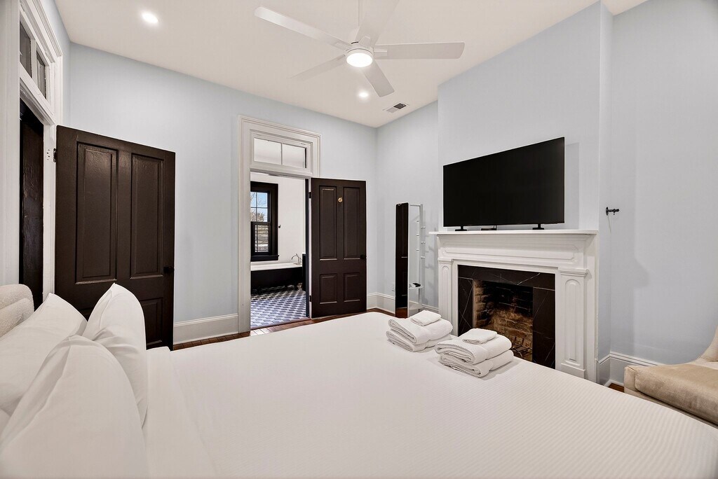 *This home is available for guests looking for a 31+ night rental. Specific pricing is available upon request. Monthly rates range from $5500-$7000/month and final rates are based on season and length of stay. Fully furnished- utilities/internet included* Welcome to Arthaus, a thoughtfully renovated Savannah home that has been lovingly restored to showcase its original beauty while embracing refined, modern design. Just two blocks from Forsyth Park, Arthaus is a residence so beautifully curated it could be featured in the pages of a design magazine and it's exactly where you'll want to stay while experiencing Savannah. What We Love About Arthaus: Impeccable Design & Finishes: Every inch of Arthaus has been designed with intention. From conversation-starting artwork and striking furniture pieces to the carefully selected materials throughout the kitchen and bathrooms, the home embodies subtle luxury and elevated taste without feeling overdone. Ample Space for Gathering: Spanning two levels, the entire first floor is dedicated to entertaining and connection. The front sitting room is an inviting place to relax with a book or unwind after a day in the city. Beyond that, a second gathering space offers generous seating, a large smart TV, and a cozy bistro table. Across the hall, guests will find a custom wet bar complete with a wine fridge, beverage fridge, sink, and everything needed to craft cocktails with ease. A Chef-Worthy Kitchen: Bright, airy, and beautifully finished, the kitchen is a dream for those who love to cook. Top-of-the-line appliances and a built-in breakfast nook make it perfect for both casual mornings and home-cooked dinners. Private Outdoor Courtyard: Outdoor space like this is a rarity in Savannah. Arthaus features a spacious courtyard with elegant pavers and thoughtful landscaping ideal for alfresco dining or evening gatherings. Fire up the gas grill and enjoy a meal under the open sky. Upstairs, guests will find two spacious bedrooms designed for comfort and rest. The primary suite features a king bed and a luxurious ensuite bathroom with a double vanity, an incredible walk-in shower, and an original clawfoot tub that adds timeless character. Just off the landing is the hallway bathroom, equally refined with spa-like finishes and an oversized walk-in shower. Toward the front of the home, the second bedroom offers a queen bed, smart TV, and a wardrobe to accommodate all of your belongings. Sleeping Configuration: Bedroom 1: King Bed Bedroom 2: Queen Bed What is parking like for this home? Guests will have access to two private, off-street parking spaces, directly behind the home.