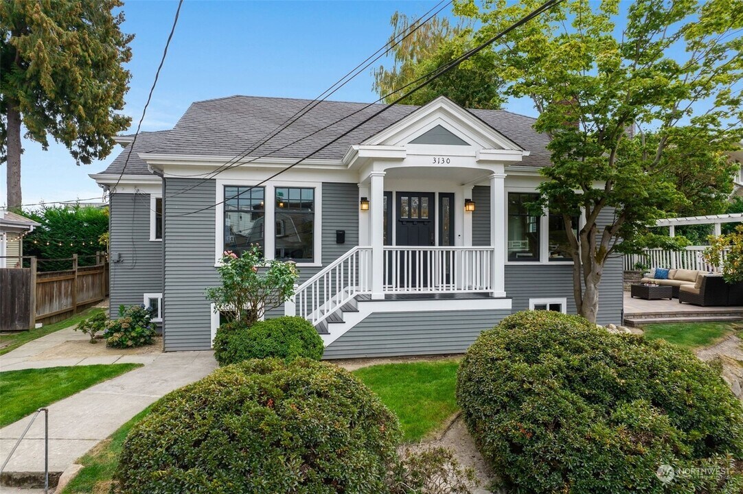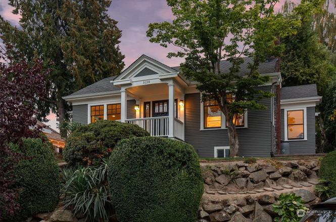 Extensively and beautifully renovated Portage Bay home, perfectly sited above the street with welcoming curb appeal. Light-filled interior with gorgeous hardwoods and designer paint colors. Attractive wood fireplace accented by built-in bookcases. Dream kitchen with honed granite counters, subway tile backsplash, and white farmhouse sink. Two spacious bedrooms on either side of a luxurious full bath featuring Waterworks fixtures, exquisite tile, and heated limestone floors. Large basement for expansion has good ceiling height, partially plumbed for a bath. Outdoor entertaining patio and one-car detached garage