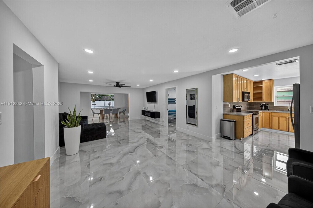 Beautiful and spacious 3-bedroom, 2-bath single-family home located in a quiet neighborhood of Riverland Village. This bright residence features modern finishes, tile flooring throughout, an updated kitchen with sleek cabinetry and stainless steel appliances, and renovated bathrooms. Half of the exterior right-side hallway and the garage are not included in the rent. The laundry will be moved inside the house. Enjoy a large fenced backyard with a sparkling private pool and plenty of space for outdoor gatherings or relaxation. Perfectly situated near major highways, shopping centers, schools, and just a short drive to Downtown Fort Lauderdale and the beaches. Ready for immediate move-in — come see it today!