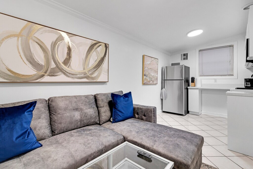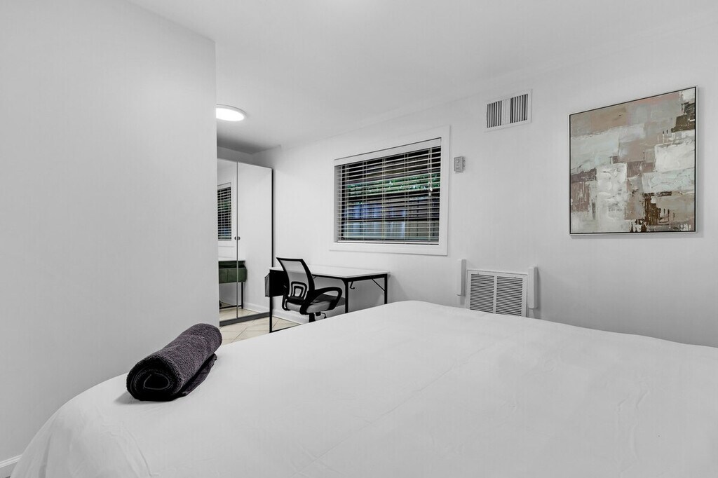 Feel at home in this newly renovated 1-bedroom apartment in a multi-family residential property. This separate structure shares common areas and offers a keypad entrance for easy check-in. Assigned parking is available in front. The apartment features a king-size bedroom with an en suite bathroom. The couch converts to a full bed, accommodating up to four guests (three recommended). The full kitchen is equipped with a cooktop. A large closet with a mirror and desk space is also available. Other families rent units within the same property, and you may come across other guests during your stay. Please be respectful and considerate of one another's privacy and comfort. While shared common areas provide opportunities for interaction, we encourage everyone to maintain a peaceful and harmonious environment for all.