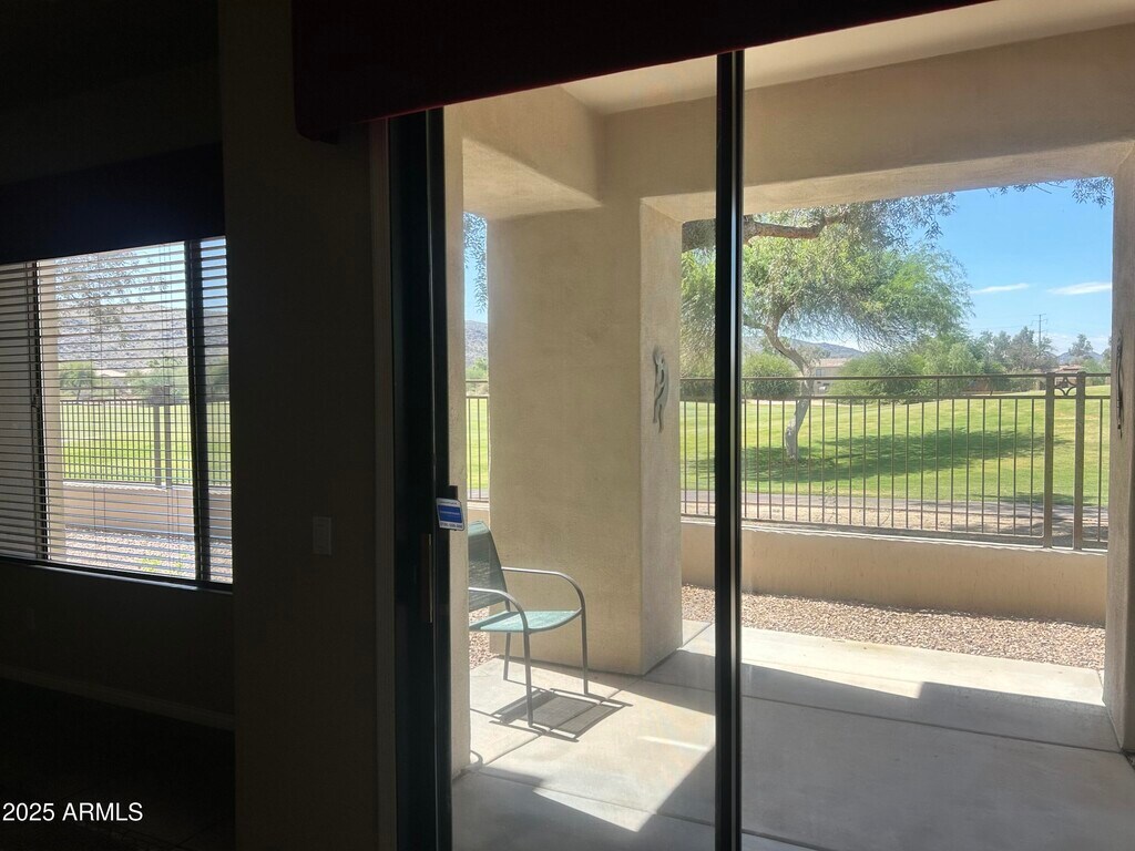 Beautiful ground floor golf course home in the valley of the sun. The home is situated at the legacy golf course and resort. Stunning golf course and mountain views from bac patio,privet covered patio at rear of the home,leading into a specious living and dining room. This lovely home offer gourmet kitchen,cherry cabinets stunning tile and custom backslash with amenities like a wet bar with wine chiller. A second bedroom that has a full bath with walk in closet also including a den. Plenty of space with an oversized two car garage. We love to show how great this family home is,Come see.
