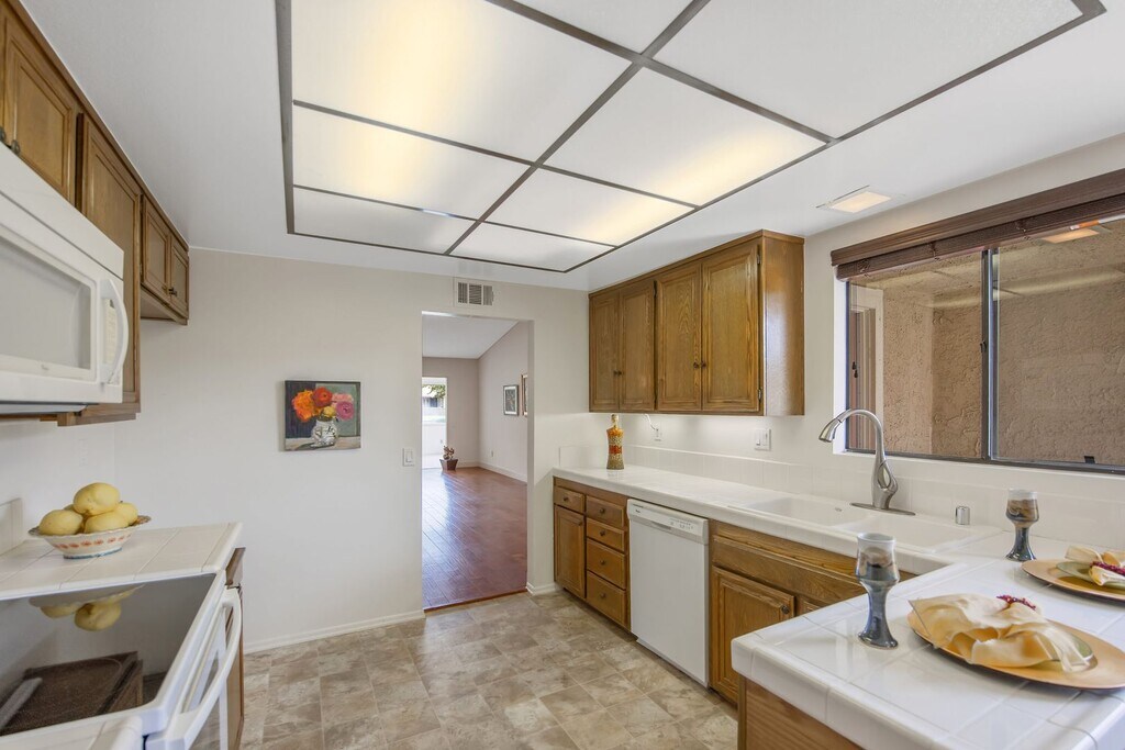 Apply now: Welcome to Leisure Village – the ultimate 55+ community lifestyle in Camarillo! Nestled in one of the area’s most desirable neighborhoods, this inviting Capri model blends comfort, style, and convenience for effortless living. Ideally located on a peaceful greenbelt with no rear neighbors, this end-unit home offers wonderful privacy, abundant natural light, and a serene setting surrounded by lush landscaping. The living room boasts vaulted ceilings, skylights, and rich wood flooring, creating a bright and airy atmosphere. A sunroom-style enclosed patio with a closet extends the living area—perfect for reading, crafting, or hosting friends. The kitchen features a cozy breakfast nook overlooking the greenery, ample cabinetry, and tile countertops, making it both functional and charming. The primary suite includes a large closet and a private bath, while the second bedroom, accented with plantation shutters, works beautifully as a guest room or home office. The upgraded walk-in shower showcases modern finishes and adds a touch of luxury. Step outside to enjoy your private patio shaded by mature trees, or relax indoors with the comfort of central air conditioning on warmer days. Whether you’re relaxing in your enclosed patio, joining neighbors for a morning stroll, or simply soaking in the tranquil surroundings, this home offers the ideal balance of peace and community. Residents of Leisure Village enjoy a secure, beautifully landscaped environment with an abundance of amenities: a 9-hole golf course, heated pool and spa, fitness center, tennis and pickleball courts, library, hobby rooms, and a full calendar of clubs, classes, and social activities—all just minutes from Camarillo’s shopping, dining, and freeway access.