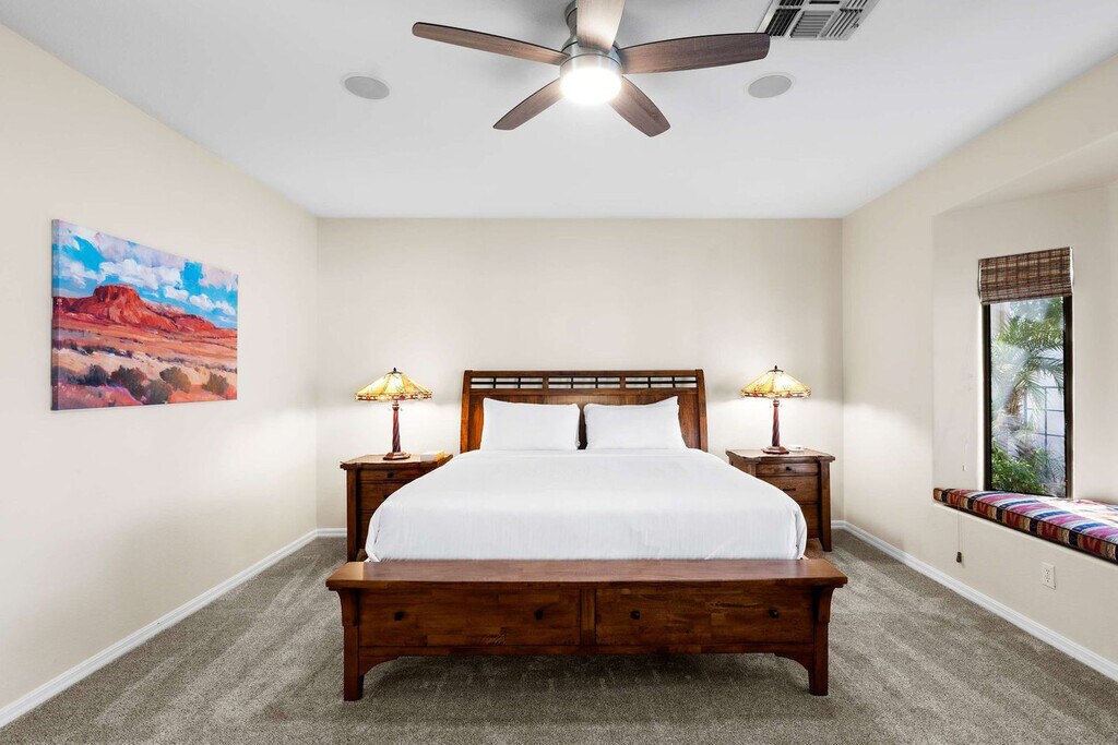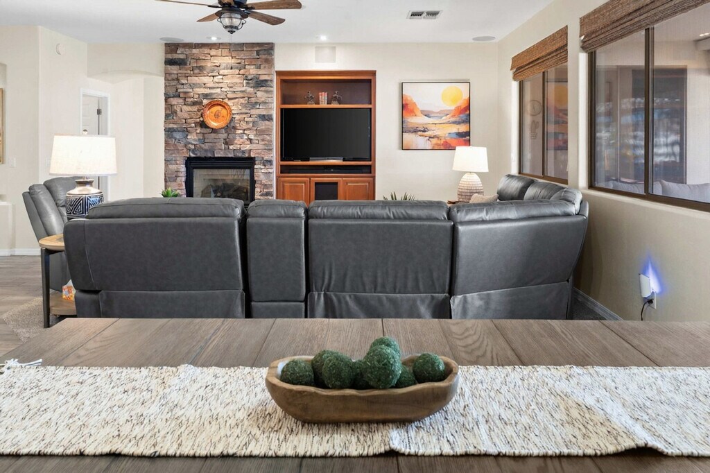The advertised rate of $5,652/month is the lowest available price, based on a 30 day(s) stay with a move-in date of July 31, 2026. Rates vary depending on the duration of stay, season, and other parameters. For exact pricing and additional pricing components, please visit our website and enter your desired move-in and move-out dates. The rate is applicable when billed upfront; it can be higher if billed in multiple payments. Welcome to your perfect Arizona escape, a spacious and stylish 5-bedroom home in Goodyear designed for comfort and fun. With room for up to 10 guests, feel at home in this ideal spot for families, friends, or group getaways. This home is jam-packed with amenities, including a fully stocked kitchen with high-end stainless appliances, a large refrigerator, ample cabinetry, a large island with high seating, and a drip and Keurig coffee maker. Enjoy the open-concept layout with an inviting family room, a 55” smart TV, a large plush sofa, and an indoor fireplace. There is also a dedicated game area with a pool table and board/card games, a media room with a smart TV and large sofa, a washer and dryer, and high-speed Wi-Fi. The bedrooms feature smart TVs, nightstands, and lamps. The outdoor area includes a built-in BBQ grill, an outdoor gas fireplace and sitting area, an outdoor patio and dining area, poolside loungers, and corn hole. Enjoy the heated private pool and spa for an additional fee of $125 per night. You can only heat either the pool or the spa, not both at the same time. Parking is available for 2 vehicles in the driveway and 1 in the garage. Nearby attractions include Goodyear Ballpark, Camelback Ranch Ballpark, Peoria Sports Complex, Surprise Stadium, Palm Valley Golf Course, The Wigwam, Pebble Creek, Golf Club of Estrella, State Farm Stadium, Phoenix Sky Harbor International Airport, Estrella Mountain Regional Park, Lake Pleasant, Estrella Star Tower, Wildlife World Zoo, Aquarium & Safari Park, and Goodyear Recreation Center & Park. Restaurants in the area include Haymaker Goodyear, BJ’s Restaurant & Brewhouse, Cheddar’s Scratch Kitchen, Spitz Mediterranean Street Food, and Over Easy. No pets and no parties are allowed. Violations of the no parties policy may result in immediate termination of the stay. Guests must be 25 years or older to book this property. Check-in is at 4pm and check-out is at 10am. An exterior camera is installed solely to monitor the cleaning team for quality and security purposes. Registration Number: City License # STR0000489 | TPT # 21630393 [SI]
