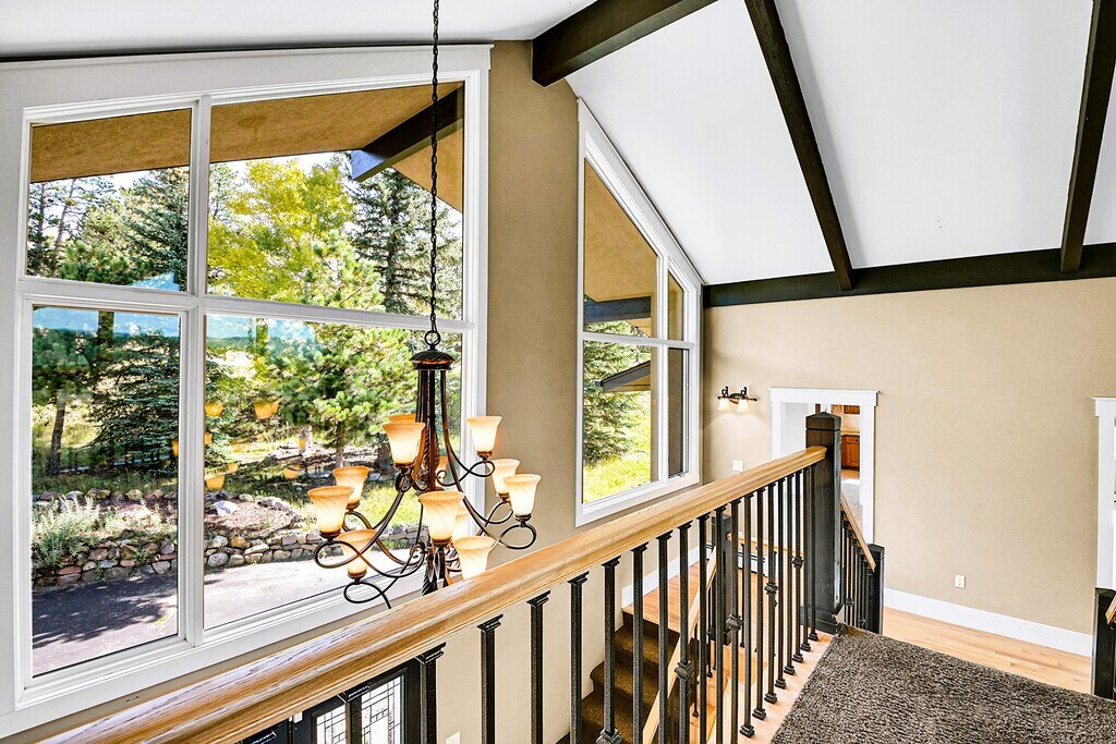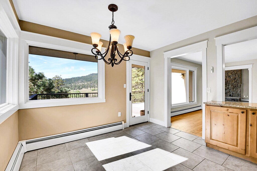 LIVE THE MOUNTAIN LIFESTYLE Experience refined mountain living in this extraordinary residence, perfectly situated in the prestigious Hiwan Country Club community and showcasing unrivaled views of Elk Meadow Park. $2000 RENT INCENTIVE IF MOVE-IN BY NOV 15TH! The dramatic great room is the heart of the home, where soaring vaulted ceilings, walls of glass, and an iconic moss rock fireplace create a breathtaking sense of scale and sophistication. Thoughtfully designed for both grand entertaining and intimate evenings, this space flows seamlessly onto an expansive deck. Here, you can dine under the stars, relax in total privacy, and enjoy the retractable automatic awning for year-round comfort. Owned solar panels further enhance the home's thoughtful blend of elegance and sustainability. The primary suite is a sanctuary unto itself, complete with a private balcony capturing sweeping mountain vistas. A luxurious five-piece bath—with dual vanities, individual closets, and spa-inspired finishes—delivers both indulgence and practicality. The secondary bedroom, enhanced by a second moss rock fireplace, is currently styled as a home office and offers reliable high-speed internet for those who desire a private executive workspace. On the lower level, floor-to-ceiling windows frame a spacious family room designed for leisure and versatility, whether envisioned as a media lounge, billiards room, or entertainment retreat. Two additional guest suites complete the space, ensuring comfort for family and visitors alike. This residence offers the rare opportunity to live steps away from Elk Meadow Open Space Park's 1,000+ acres of pristine trails and the acclaimed Hiwan Golf Club. Membership is optional, yet provides privileged access to championship golf, swimming, and world-class amenities—just a two-minute golf cart ride from your door. The oversized three-car garage provides ample storage for vehicles and mountain gear, completing this remarkable property. A rare offering in Evergreen's most sought-after neighborhood, this home combines privacy, elegance, and the very best of Colorado's mountain lifestyle. Please note: Like many mountain properties, this home does not include air conditioning. No smoking and no cats permitted. To arrange for a showing, visit the Mountain Haven Property Management website to fill out an application. .
