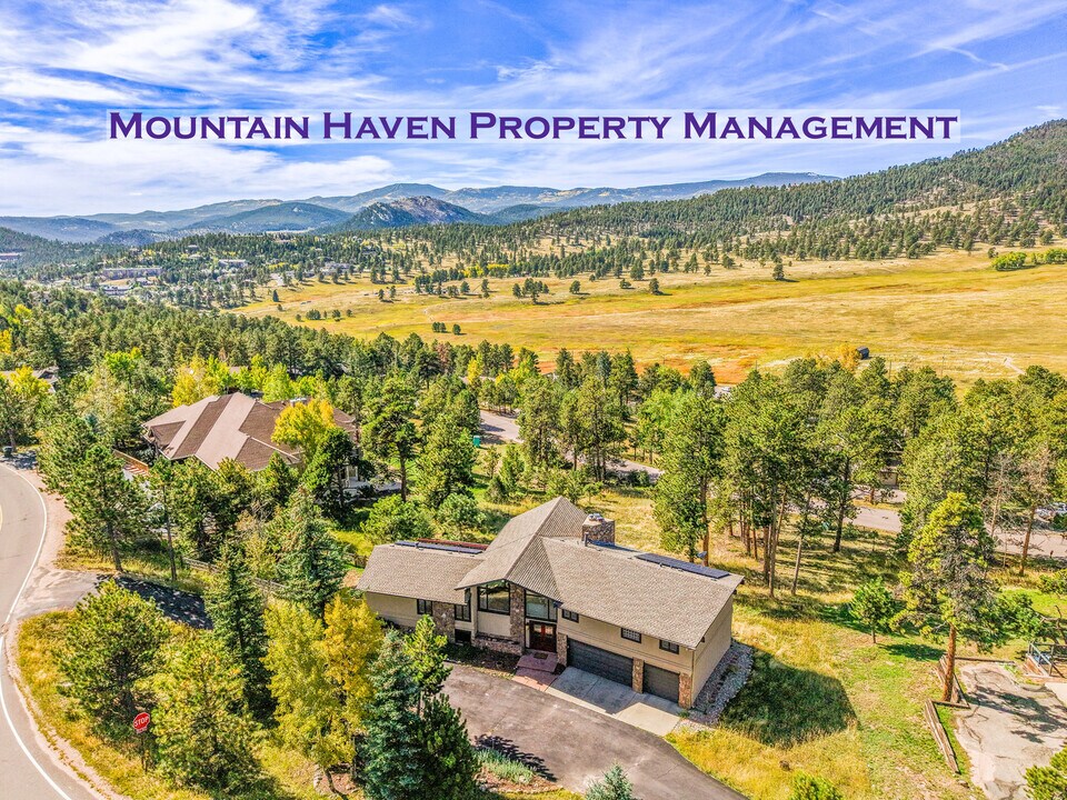 LIVE THE MOUNTAIN LIFESTYLE Experience refined mountain living in this extraordinary residence, perfectly situated in the prestigious HIWAN COUNTRY CLUB community and showcasing unrivaled views of Elk Meadow Park. The dramatic great room is the heart of the home, where soaring vaulted ceilings, walls of glass, and an iconic moss rock fireplace create a breathtaking sense of scale and sophistication. Thoughtfully designed for both grand entertaining and intimate evenings, this space flows seamlessly onto an expansive deck. Here, you can dine under the stars, relax in total privacy, and enjoy the retractable automatic awning for year-round comfort. Owned solar panels further enhance the home's thoughtful blend of elegance and sustainability. The primary suite is a sanctuary unto itself, complete with a private balcony capturing sweeping mountain vistas. A luxurious five-piece bath—with dual vanities, individual closets, and spa-inspired finishes—delivers both indulgence and practicality. The secondary bedroom, enhanced by a second moss rock fireplace, is currently styled as a home office and offers reliable high-speed internet for those who desire a private executive workspace. On the lower level, floor-to-ceiling windows frame a spacious family room designed for leisure and versatility, whether envisioned as a media lounge, billiards room, or entertainment retreat. Two additional guest suites complete the space, ensuring comfort for family and visitors alike. This residence offers the rare opportunity to live steps away from Elk Meadow Open Space Park's 1,000+ acres of pristine trails and the acclaimed Hiwan Golf Club. Membership is optional, yet provides privileged access to championship golf, swimming, and world-class amenities—just a two-minute golf cart ride from your door. The oversized three-car garage provides ample storage for vehicles and mountain gear, completing this remarkable property. A rare offering in Evergreen's most sought-after neighborhood, this home combines privacy, elegance, and the very best of Colorado's mountain lifestyle. Please note: Like many mountain properties, this home does not include air conditioning. No smoking and no cats permitted. To arrange for a showing, visit the Mountain Haven Property Management website to fill out an application. .