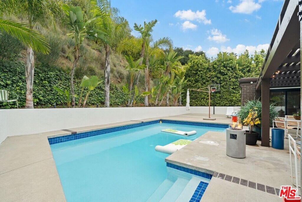An exceptional offering of refined mid-century living with an atmosphere that is both sophisticated and effortlessly relaxed. Truly a rare and special residence. Privately situated on a quiet cul-de-sac, this impeccably maintained single-level home delivers the ideal balance of seclusion and immediate access to the finest dining, shopping, and cultural amenities Los Angeles has to offer. Designed for seamless indoor-outdoor living, the open floor plan unfolds around a striking pool, with all major rooms oriented to capture the serene setting and create a fluid connection to the outdoors an entertainer's dream with complete privacy at the pool. Rich hardwood floors run throughout, enhancing the home's clean architectural lines. The elegant primary suite serves as a tranquil retreat, featuring a luxurious bath and a huge walk-in closet. Two additional generously scaled bedrooms complete the thoughtfully designed layout. A rare opportunity to experience Southern California living at its most polished and timeless. MLS# 26653063