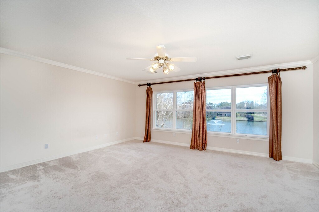 See it now - Self Tours Available. Nestled in the heart of Sugar Land,3135 Old Masters Dr presents a unique opportunity for a first-time rental. Backing up to a tranquil lake,enjoy breathtaking views from the large picture windows throughout the home. The first floor encompasses a spacious study,complemented by a layout that seamlessly connects the living spaces. No carpets adorn the floors,enhancing the home's elegance and ease of maintenance. Additional features include an ensuite bedroom,perfect for guests,and secondary bedrooms with a Jack and Jill bath arrangement boasting separate vanities. The primary bedroom,with its phenomenal lake view,includes a frameless glass shower,jacuzzi jetted tub,dual vanities,and a sprawling wrap-around walk-in closet. The property's prime location ensures convenience,being close to Whole Foods,First Colony Mall,Kroger,and an array of local restaurants. Zoned to the highly regarded Colony Bend Elementary and Clements High School. MLS# 49961700