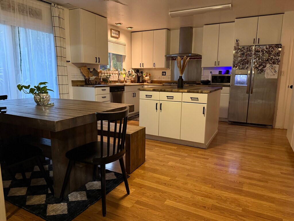 Spacious four-bedroom, three full-bath single-family home offering approximately 1,800 square feet of comfortable living space, located in the heart of Santa Rosa in a highly desirable, school-centered neighborhood. Enjoy easy access to Spring Lake, Howarth Park, and the shops and dining of Montgomery Village, with quick connections to Highways 12 and 101 and just minutes from downtown. The home features wood flooring throughout, a bright and functional layout, central heating, and a large, clean garage with an attached laundry area including washer and dryer. The garage is equipped with both heating and air conditioning, offering flexible use as a workshop, home gym, or bonus space. The kitchen comes fully equipped with a dishwasher, microwave, stove, oven, and refrigerator. The property also includes a studio with a kitchen and full bathroom, offering flexible use as a guest suite, home office, or additional living space. The fully gated front and backyard provide privacy and security. The backyard offers a deck, landscaped yard, pavers, and two covered gazebos, one with an attached enclosed space suitable for creative, fitness, or storage use. An additional storage shed provides even more space for tools or seasonal items. Pets are negotiable. Background check required. This is a rare opportunity to enjoy a flexible, well-maintained home in an excellent Santa Rosa location. Please do not disturb current tenants. Showings by appointment only. Move-in date TBD between March and April. 1 year lease