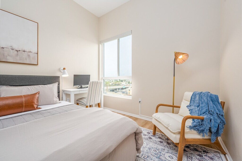 The advertised rate of $8,890/month is the lowest available price, based on a 1 month(s) stay with a move-in date of April 8, 2026. Rates vary depending on the duration of stay, season, and other parameters. For exact pricing and additional pricing components, please visit our website and enter your desired move-in and move-out dates. The rate is applicable when billed upfront; it can be higher if billed in multiple payments. Feel at home in this stylish 2-bedroom, 2-bath North Park penthouse, just 10 minutes from the zoo and downtown, and 15 minutes to the airport or beach. This penthouse combines comfort, convenience, and breathtaking views, making it ideal for families or business travelers seeking a modern escape. The gourmet kitchen flows into the dining and living areas, perfect for cooking, dining, and relaxing. Large windows and balcony doors bathe the space in natural light, enhancing the chic decor and warm ambiance. The living room features a large sectional sofa that converts to a double bed, a Smart TV with Netflix, coffee tables, and reading lamps. The kitchen is fully equipped with a microwave, stove, oven, toaster, blender, dual coffee maker (K-Cup and drip), refrigerator/freezer, plates, glassware, pots, pans, and spices. Enjoy complimentary coffee, tea, and creamers. The private balcony offers a cozy seating area with a table and chairs. A crib is available. Reserved garage parking is available. This penthouse offers a serene escape, minutes from San Diego’s top attractions. Smoking is not allowed inside the home, and any evidence of smoking will result in a fee for odor removal and furniture cleaning. Parties and events are not allowed. Each guest needs to provide an ID prior to check-in. To maintain a safe environment, last-minute bookings and local guest reservations may require extra security verification and a refundable security deposit before check-in. Includes work desks with monitors in both bedrooms and high-speed Wi-Fi. Registration Number: STR-11137L, 658905 [SI]