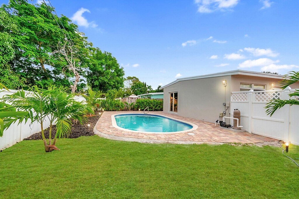 Gorgeous, light, bright & dry! This freshly painted 3 bed, 2 bath, corner home is located on a built-up lot high & dry and not in a flood zone (this home stayed dry during the flood of April 2023)! Featuring an open concept layout with laminate flooring throughout spacious living areas and a generously sized kitchen with quartz counters and stainless steel appliances. Bathrooms have been tastefully upgraded and impact windows for convenience. Offering amazing outdoor living space with an extended patio perfect for BBQ, sparkling pool (resurfaced 2023) and large fenced yard. Bring your RV or boat or both! New A/C (2022), tankless water heater (2023) and updated electrical (2023). Great location in the heart of Fort Lauderdale, close shopping & dining! Lawn service & pool service included in rent. MLS # A11980303