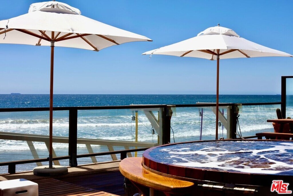Discover unparalleled coastal elegance in this fully remodeled 3-bedroom, 3-bathroom home on iconic Broad Beach Road, designed for up to 8 guests. This luxurious beachfront retreat blends sophisticated design with relaxed oceanside living, offering breathtaking ocean views and direct beach access. Key Features: Stunning Great Room: Step into an airy, open-concept living space with soaring glass ceilings, European oak flooring, and panoramic ocean views. Relax on the plush sectional sofa with a 98" smart TV or gather by the fireplace in the cozy secondary sitting area with a sofa and armchairs. Gourmet Kitchen: A chef's dream featuring Italian oak cabinetry and top-tier Gaggenau appliances, including an induction cooktop, refrigerator/freezer, double oven with microwave, dishwasher, and wine fridge. Perfect for preparing meals to enjoy at the 10-foot teak dining table, seating 12. Expansive Outdoor Deck: Seamless indoor outdoor living. The deck boasts a natural cedar hot tub, a large gas fire pit, a barbecue, a teak dining table, and ample lounging areas, all steps from the sandy shores of Broad Beach. Luxurious Primary Suite (Second Floor): A private sanctuary with a balcony featuring comfy lounge chairs, an oversized spa bathroom with plaster walls, a limestone soaking tub, a double-headed shower, Italian oak cabinetry, a walk-in closet, an 85" smart TV, and a fireplace seating area. Guest Bedrooms (First Floor): Two thoughtfully designed bedrooms, one with two queen beds and the other with one queen bed, both featuring access to a bathroom with a walk-in shower, plaster walls, and Italian oak cabinetry. A separate powder room with alabaster lighting adds convenience.Premium amenities include a detached two-car garage with a washer/dryer, a backup power battery, and an EV charger. The home is equipped with top-of-the-line fixtures, finishes, and smart home technology throughout. Experience Coastal Bliss. This beachfront gem offers the ultimate indoor-outdoor lifestyle, combining modern luxury with the serene beauty of Broad Beach. Whether soaking in the hot tub, dining al fresco with ocean waves as your backdrop, or unwinding in the spa-inspired primary suite, every moment here is designed for relaxation and indulgence. Available for lease starting September 2025. Don't miss the chance to call this fabulous retreat your home by the sea. MLS# 25558487