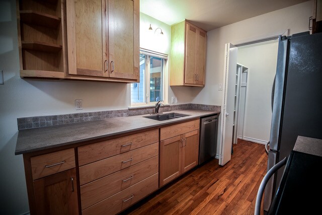 Charming updated home in downtown Blanco steps from the Historic Square and backing to Bindseil City Park. This 3-bedroom, 2-bath home features a split floor plan, hardwood floors in the main living areas, and a primary suite on the east side for added privacy. The kitchen includes a refrigerator, a washer, and a dryer. Enjoy the outdoor back deck and large covered parking area. Convenient small-town Hill Country living close to shops, dining, and parks.