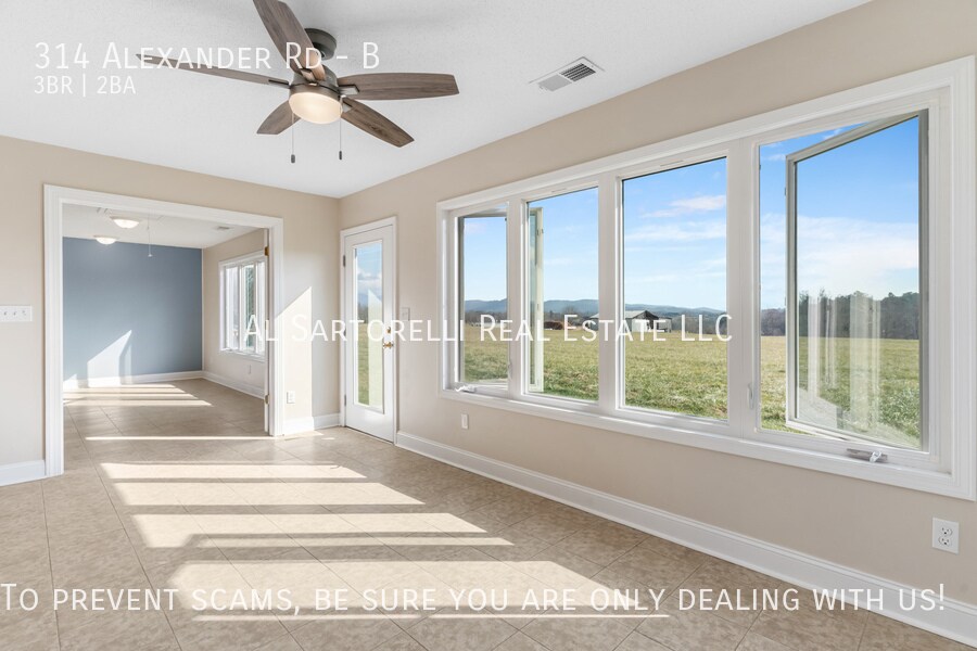 Enjoy mountain living with easy access to Asheville and Weaverville in this inviting 3BR/2BA duplex. Set in a peaceful, scenic location with beautiful views, this home offers a serene retreat while keeping you close to everything you need. The layout is comfortable and practical, with great natural light, an easy-flow floor plan, and room to spread out. Enjoy the fully enclosed sunroom while looking out at the backdrop of mountain views, and; wood burning stove, freshly updated carpet, appliances, and paint! . You'll also have access to half of the garage (1 car space) perfect for parking, storage, or outdoor gear. The property is also pet friendly, so your four-legged companions are welcome! If you’re looking for a calm, spacious home with quick access to town and the charm of country living, this duplex is a wonderful fit. *No Smoking *Pet friendly with deposit *Access to half the garage - 1 car spot *Lawncare, Water, Trash, Exterior Pest Control Included *15 Minutes to Weaverville *Well & Septic *No Basement Access