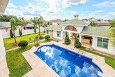 Impressive & luxurious with a show stopper curb appeal. It's the dream home you have been waiting for. Features a grand double door entrance, stone water fountain, auto controlled gated 3 car garage & solid construction of masonry block. All the living areas have views, high ceilings & a neutral palette. High-end equipped Chef's kitchen, outdoor pool, game room & gym will be your family's favorites. Call for a tour!