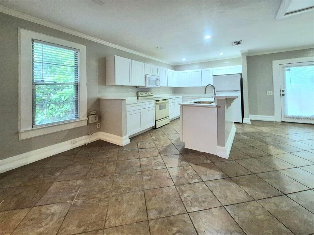 This charming 2-bedroom,2-bathroom historic bungalow in Tampa Heights offers character-filled living space in a fantastic location! Just a short walk to the University of Tampa,Armature Works,RiverWalk,and downtown,this home is ideally situated for both convenience and excitement. Recently updated kitchen including new cabinets and countertops. As you enter,beautiful hardwood floors and ceramic tile are throughout the home,making cleaning a breeze. The kitchen features light wood cabinetry,granite countertops,and comes equipped with a white appliance package. For added convenience,there's a washer and dryer in place,as well as window blinds to let in just the right amount of natural light. Ceiling fans help keep the home cool. The backyard is fenced and perfect for entertaining. Located near Riverwalk,Armature Works,and downtown Tampa,with groceries,retail,and dining options just moments away,this home combines historic charm with modern convenience. In addition to the advertised base rent,all residents are enrolled in the Resident Benefits Package (RBP) for $50.00/month which includes HVAC air filter delivery,credit building to help boost your credit score with timely rent payments,utility concierge service making utility connection a breeze during your move-in,and much more! More details upon application. Pets welcome! Vacant and Available now. MLS# TB8442672