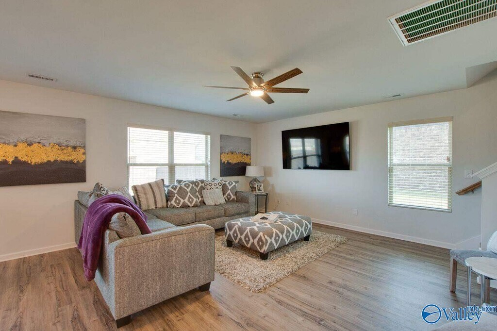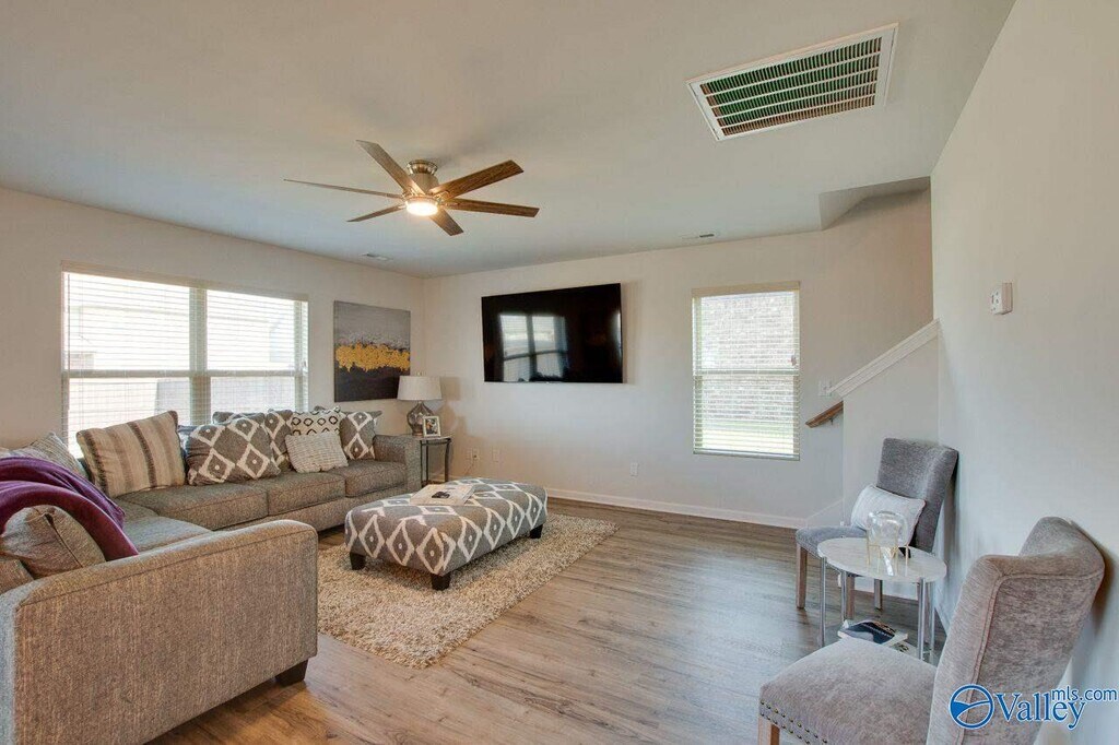 Move in ready 4 bedroom 3 bath well maintained home for rent in Burwell Gardens! This home was built by Legacy Homes & is the Saratoga plan which offers 4 bedrooms,flex room,bonus room & 3 full bathrooms. Kitchen,living & dining are a modern open concept. Easy access to highway 53,Research Park Blvd & Redstone Arsenal. 2 car garage,fully fenced in back yard & fridge is included!