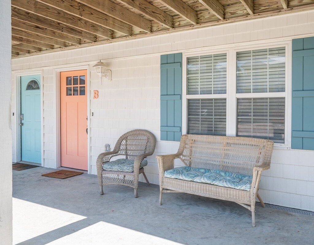 SHORT TERM ONLY beach house available for rent at bargain monthly price during the off-season. This charming Duplex in the heart of the most peaceful part of Kure Beach is right across the road from the beach. This lovely home may be rented as a 4 BR, 3BA house for the family. Or, the top floor can be rented as a 2 BR, 2 BA home. The bottom floor can be rented as a 2 BR, 1 BA apartment.