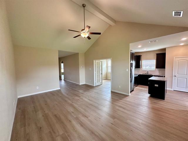 2021 built featuring 4 bedrooms, 2 full baths, a large living area, and a huge fenced backyard that makes this single story house a cozy and relaxing place to enjoy. Vaulted ceilings in the living room creates a spaciously designed area to spend time with the family. The fourth bedroom can also be used as study a room. Fully equipped Energy-efficient kitchen appliances including microwave, oven, dishwasher, and refrigerator, Custom Kitchen Cabinets.