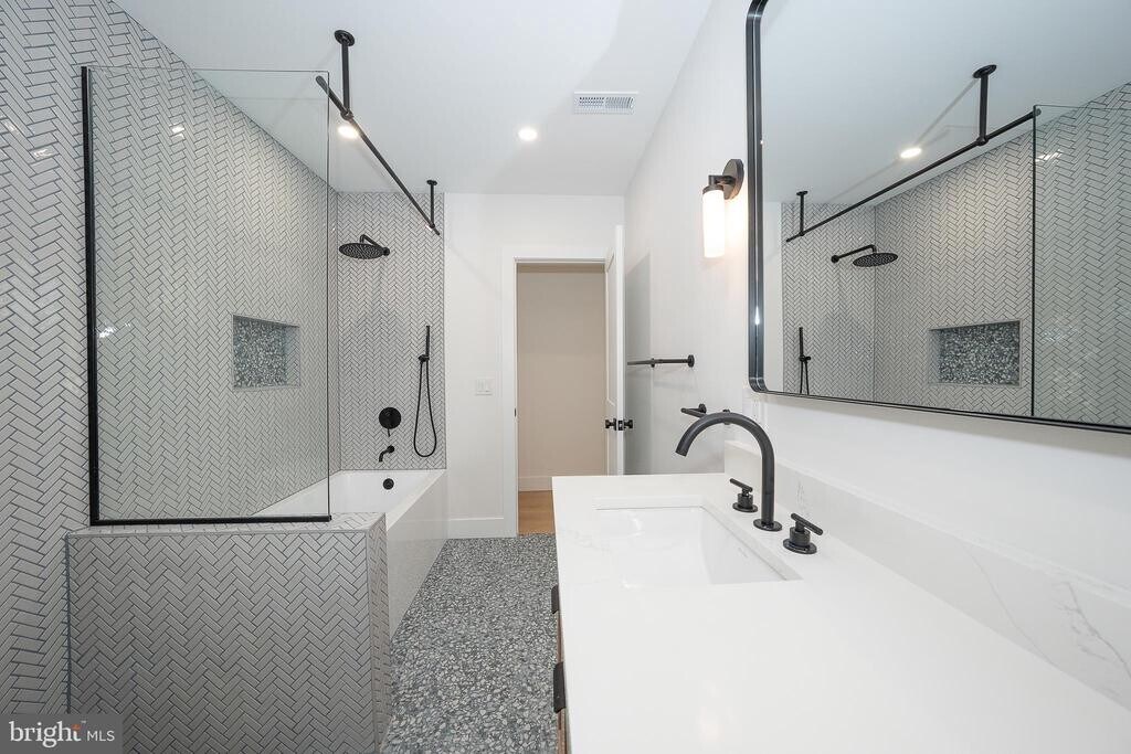 Welcome to 314 N Essex Road, a fabulous, fully renovated 5-bedroom, 3.5-bath home in the heart of highly sought-after Narberth Borough. Featuring gorgeous, high-end finishes throughout, this home beautifully blends modern luxury with classic Main Line charm. The quintessential covered front porch welcomes you inside. Just off the foyer, glass doors open to a private living room—ideal for a home office or quiet retreat. The center hall leads to the spacious, open-concept gourmet kitchen, family room, and dining area with a stylish wet bar. The stunning kitchen features an oversized island with quartz countertops, seating, a cooktop, high-end cabinetry, and a convenient walk-in pantry. The flexible open space flows to new sliders that lead to the brand-new back deck and a large, level backyard—perfect for outdoor entertaining. A lovely powder room completes this floor. Upstairs, the impressive primary suite includes a custom-outfitted walk-in closet and a luxurious primary bath with a double vanity, soaking tub, and gorgeous tiled walk-in shower. Two additional bedrooms, a beautifully renovated hall bath with double vanity and bathtub, and a spacious laundry room with sink complete the second level. The third floor offers incredible flexibility with two additional rooms—ideal for guests, an office, or an au pair suite—plus a full hall bath with walk-in shower and excellent storage. The finished lower level provides even more living space, perfect for a playroom, media room, or gym. All of this located in the coveted Narberth Borough, just steps from parks, the library, shops, restaurants, and the movie theatre. Walk to the R5 train and enjoy award-winning Lower Merion Schools.