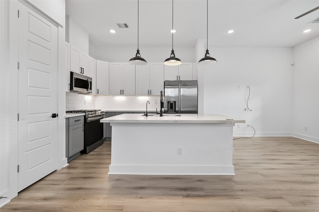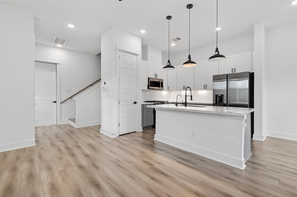 Gated community with added privacy and convenience! This CORNER-unit home with NO BACK NEIGHBOR offers a private driveway,fully fenced backyard,and a second-floor flex room ideal for a home office or bonus space. Located in Neyland Views,Located in Neyland Views,a gated enclave in Independence Heights. This two-story home features first-floor living area and a fenced front yard. Interior highlights include luxury vinyl flooring throughout the living area,quartz countertops in the kitchen and bathrooms,stainless steel appliances,modern hardware,and shaker cabinetry with soft-close doors and drawers. REFRIGERATOR,WASHER and DRYER are included! Also include SEWER,WATER,TR and FRONT LAWN MAINTENANCE. Enjoy a highly accessible location with easy freeway access and close proximity to Downtown,the Galleria,the Medical Center,sports stadiums,and the Museum District. Schedule a showing today and see everything Neyland Views has to offer. MLS# 54030093