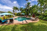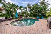 Discover the perfect blend of charm, style, and convenience in this stunning rental home, located in a non-HOA community just minutes from the Intracoastal and beautiful beaches. Set in a quiet neighborhood with unique character, this meticulously cared-for home features beautifully tiled living areas, 3 bedrooms with warm wood flooring. The spacious Florida room is fitted with hurricane-impact windows, and the family room comes complete with built-in shelving. This home boasts a gorgeous in-ground pool surrounded by brick pavers, tropical landscaping, and ambient lighting. With easy access to highways, shopping, and dining, this residence offers both peaceful living and unbeatable convenience.