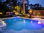 For lease with the option to buy! Owner is a licensed real estate broker. High and Dry 4.87 acres located near the end of a quiet road. Video of the property and interior is available. NEWER GE W/D INCLUDED! Also included are 3 refrigerators, 2 wells/pumps, and 2 electric meters. Minutes from A-rated schools like Belmont Academy and Columbia Elementary. Luxurious ensuite (4th bedroom) with private access. The ensuite includes a custom modern bathroom with private cedar sauna/safe room, hidden behind a bespoke bookshelf secret entrance! Many upgrades include raised ceilings, updated wiring, plumbing, trim, crown molding, granite counters, and high-end finishes. Gorgeous 10x60 Charred Black Porcelain Tile installed over "bulletproof" Crack-Isolation Membrane. Owner’s spacious bedroom area offers beautiful full bathroom with double vanity, jetted tub, large shower, walk-in closet with built-in storage and a full-length wooden deck facing breathtaking sunrises over a serene pasture. In-ground pool adjacent to an expansive raised brick patio. The property is adorned with healthy hardwood trees and a rain-activated fountain. Detached flex-space brick building with A/C. Detached large work-shop w/ power. Inquire today! Typical fees: Pet fee $299/pet Lease closing fee $100/lease *additional fees may apply