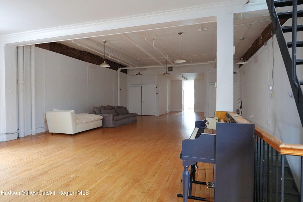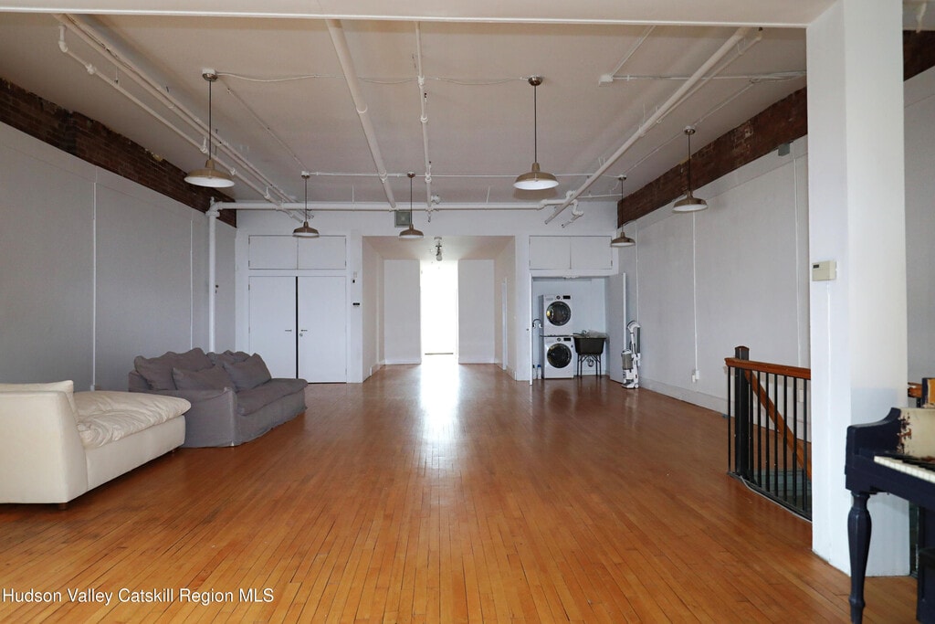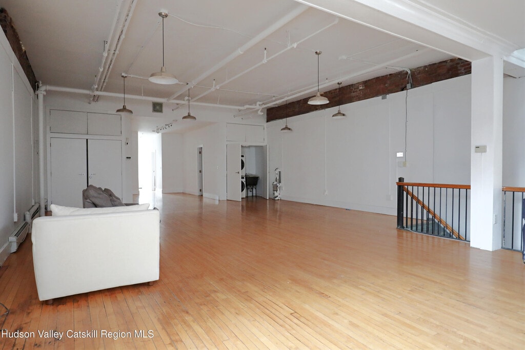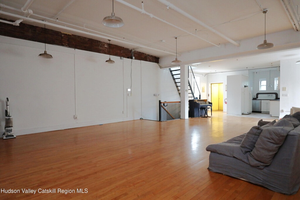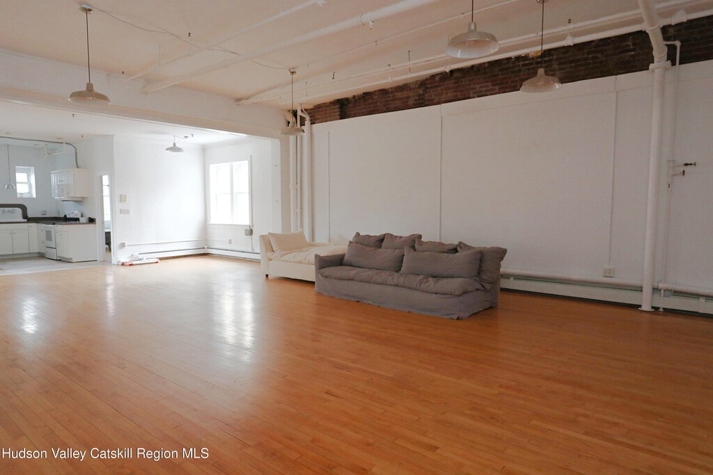 Sprawling 2-bedroom,1.5-bath full-floor loft in Uptown Kingston's Stockade District. This third-floor walk-up spans over 1800 sq ft with exposed brick,hardwood floors,and oversized windows. The open-concept main space features a 25' x 23' living area and 17' x 23' dining zone—perfect for entertaining or creative use. Kitchen includes vintage sink and modern appliances (10' x 8'9''). The layout also offers two large bedrooms (15'7'' x 9'1'' and 25'9'' x 9'10''),and a walk-in closet,dedicated laundry room. Efficient ductless mini-splits for heating/cooling. Tenant pays 1/3 building heat,1/2 shared electric,and 1/2 water. No smoking. Unfurnished.