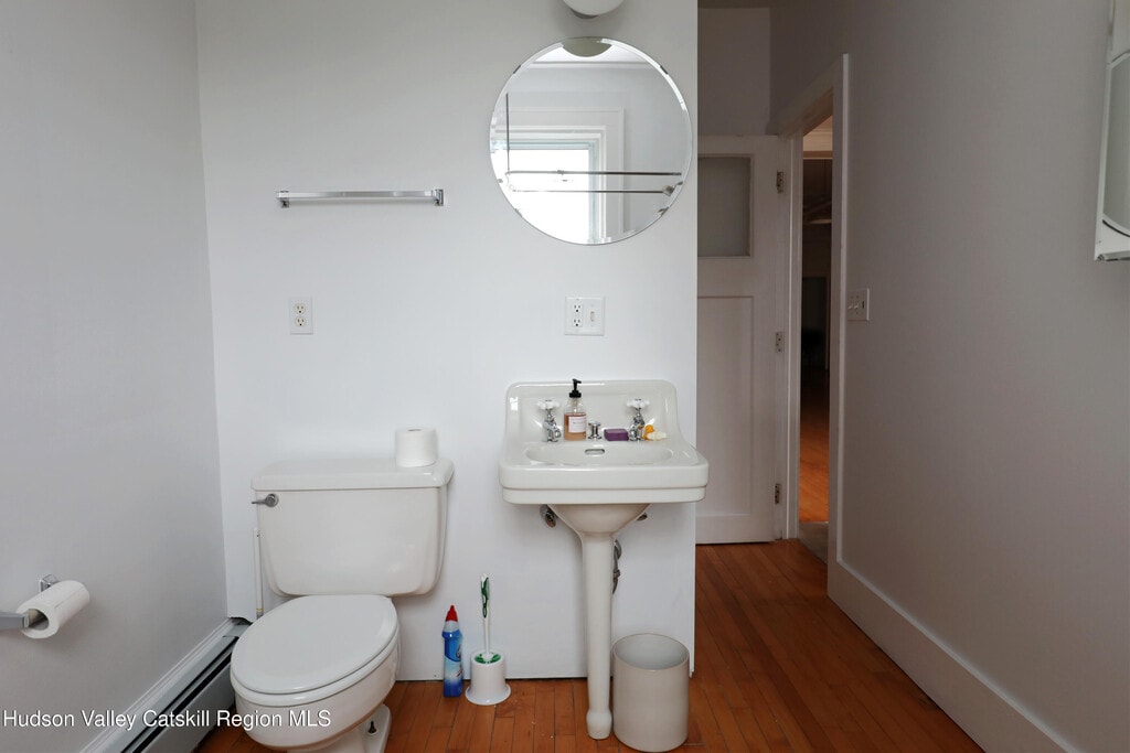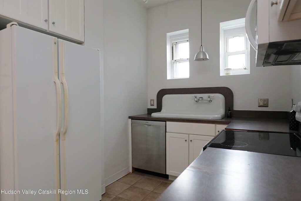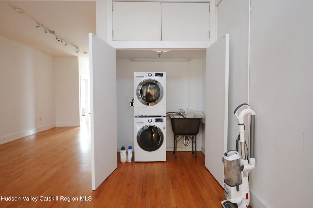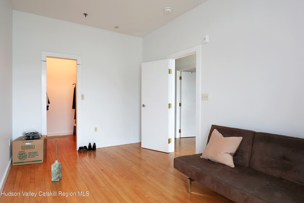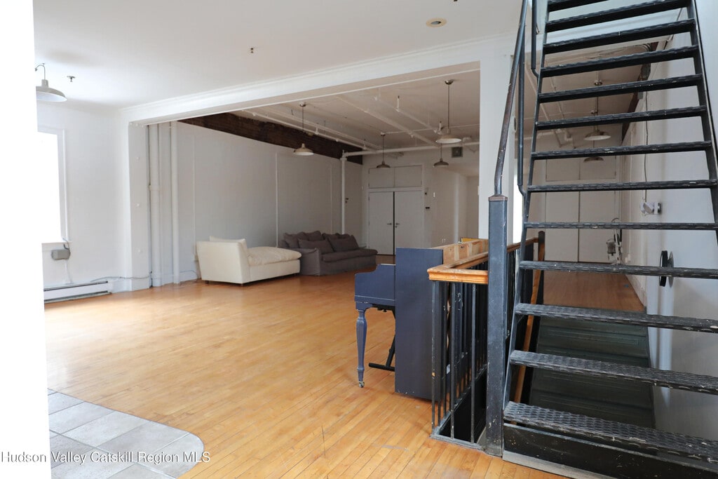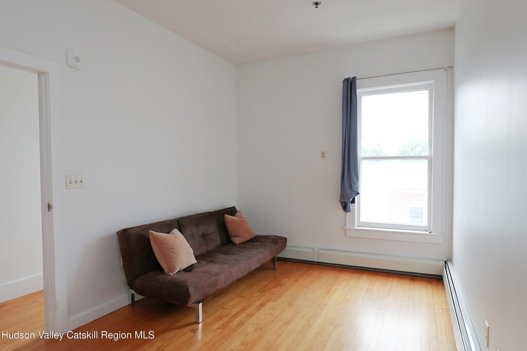 Sprawling 2-bedroom,1.5-bath full-floor loft in Uptown Kingston's Stockade District. This third-floor walk-up spans over 1800 sq ft with exposed brick,hardwood floors,and oversized windows. The open-concept main space features a 25' x 23' living area and 17' x 23' dining zone—perfect for entertaining or creative use. Kitchen includes vintage sink and modern appliances (10' x 8'9''). The layout also offers two large bedrooms (15'7'' x 9'1'' and 25'9'' x 9'10''),and a walk-in closet,dedicated laundry room. Efficient ductless mini-splits for heating/cooling. Tenant pays 1/3 building heat,1/2 shared electric,and 1/2 water. No smoking. Unfurnished.