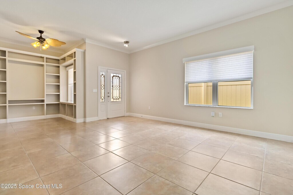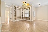 Remarkable,upgraded,and mint 3 bed,2.5 bath home in the gated community of Pineda Ridge. This home sits on a beautiful nature area with a lake offering perfect views of mother nature. Upgrades throughout the home include crown molding,built in desk/bookcase,light fixtures,remote window shades,high efficiency toilets,closet built-ins,luxury bath with walk-in shower and soaking tub,rock style tiled screened lanai,amazing landscaping,Rainbird Sprinkler System,storm shutters,all gutters and downspouts,rock tiled pathway,and entire home is tiled. The floorplan is so versatile and flows perfectly for entertaining. Community pool! Location says it all,as you are minutes from everything,a quick drive to the beach and I-95. Yet,you feel like you are away from the busy in world in this small and quiet community with your nature oasis in your back yard. Yard care included in lease price. May consider 6-8 month rentals. Pet Friendly!