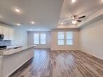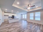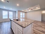 Quiet Cul De Sac! Tray Ceiling in Family & Primary suite. Wood Like Tile, Modern Gray Walls, Great standard features, including granite countertops in kitchen and all baths, 42 inch WHITE cabinets, Herringbone backsplash, whirlpool brand stainless appliances, tankless water heater, full sod front and back with irrigation, home automation powered by Google, separate tub and shower in master bath, coach lights and more!