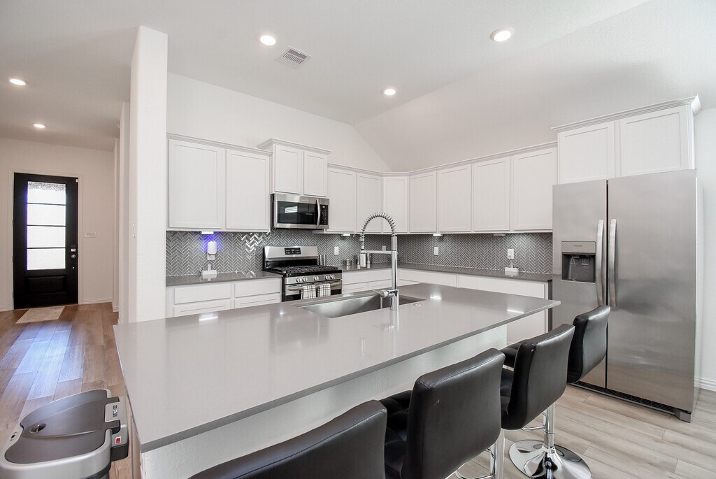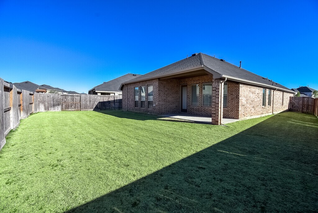 Beautiful one-story 4-bdrm,3 full bath plan. The owner’s suite is situated in the back with an en-suite bathroom and huge walk-in closet. Two secondary bdrms located near a full bath. Still fairly new,only 3 years young,single individual lived here,and secondary bedrooms barely touched! No pets ever lived here! Everything is included! Blinds,washer,dryer,fridge,garage door openers,full sprinkler system! Gorgeous island kitchen,loads of natural light with loads of windows,side-by-side fridge,5-burner gas cooktop,pot drawers,and a huge breakfast bar/island! Full gutters! And it's a "SMART HOME" with a complete Ring system (Alarm security kit,Video Doorbell,Honeywell WIFI thermostat,smart garage control and Schlage Smart Keyless-Entry.) All controlled from your smartphone! Great LCISD schools! Elementary school within walking distance! Playground directly across the street. You get to enjoy all Cross Creek Ranch amenities too! MLS# 2720993