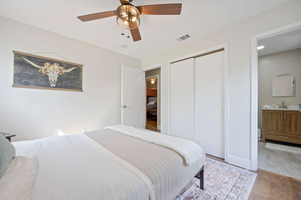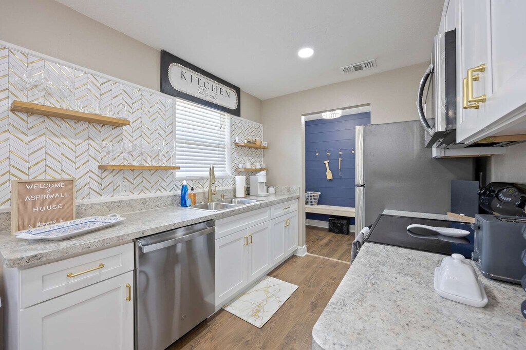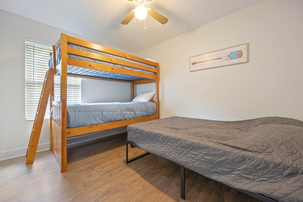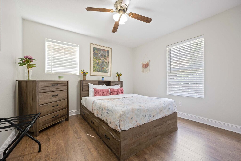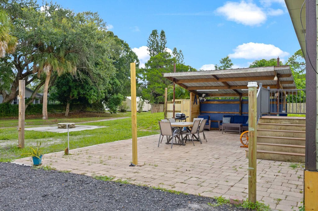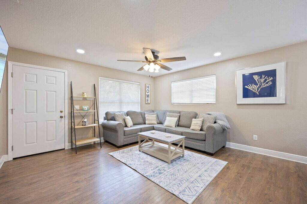 Escape to this charming, fully updated 4-bedroom, 2-bath bungalow nestled in the heart of Rockledge, conveniently close to Viera, Suntree, the USSSA Sports Complex, and just 10 minutes to the beach. This beautifully renovated manufactured home boasts modern amenities, an incredible outdoor living space, and everything you need for a comfortable stay. Whether you're relaxing by the fire pit, enjoying a game on the outdoor TV, or exploring nearby parks, shopping, and dining options, this home is the perfect base for your Florida getaway. This modern bungalow offers a peaceful retreat in Rockledge, perfect for families, sports enthusiasts, or groups. The open floor plan connects the kitchen, dining, and living areas, creating a welcoming atmosphere for all to enjoy. The outdoor space is a highlight, featuring a fire pit and an outdoor TV, making it ideal for evenings under the stars. The living area is designed for relaxation, with plenty of comfortable seating, a large flat-screen TV, and easy access to the outdoor entertainment space. Whether you’re lounging inside or enjoying the fresh air outside, this home has everything to ensure a memorable stay. The bungalow features four bedrooms, all thoughtfully decorated and equipped with plush beds to ensure a restful night's sleep. Each room has ample closet space, and the master bedroom comes with an en-suite bathroom. Both bathrooms are fully updated with modern fixtures and spacious showers. Enjoy Florida’s beautiful weather in the expansive outdoor area. Sit by the fire pit, catch the game on the outdoor TV, or simply relax with friends and family in the serene setting. The space is perfect for unwinding after a day of exploring. The kitchen is fully stocked with everything you need to prepare meals during your stay, including modern appliances, cookware, and dishware. There's also plenty of counter space and a dining area for enjoying meals together. This spacious home is the perfect retreat for families or groups, offering a mix of modern convenience and outdoor fun. Whether you're in town for a sporting event or just looking to relax, this bungalow has you covered. While we love all furry friends, only dogs are allowed at this property, with a fee of $100 per pet per stay. Located along Florida's beautiful Space Coast, just 10 minutes to the closest beach access and near the areas of Rockledge, Viera, and Suntree offer a perfect blend of suburban tranquility and vibrant amenities. Rockledge, the oldest city in Brevard County, is known for its historic charm, tree-lined streets, and close-knit community. It’s home to various parks, shopping centers, and dining options, providing both convenience and leisure. Viera is a growing master-planned community just minutes from Rockledge. Known for its family-friendly atmosphere, Viera boasts excellent schools, upscale shopping at The Avenue Viera, and top-tier recreational facilities. The area is also home to the USSSA Space Coast Complex, a renowned sports venue attracting athletes and fans from around the country. Suntree, located between Rockledge and Viera, offers a peaceful, residential feel with scenic views of golf courses, lakes, and parks. Suntree Rotary Park is a local favorite, providing access to the nearby river for kayaking, fishing, and picnicking. Whether you're looking to enjoy nature, shop, or catch a game, these neighborhoods have something for everyone. Together, Rockledge, Viera, and Suntree create a wonderful destination for visitors, combining modern amenities with natural beauty and a relaxed Florida lifestyle. To ensure a comfortable start to your stay, we provide an initial stock of essentials such as paper towels, toilet paper, tissues, coffee pods, creamer, sugar, light cleaning supplies, garbage bags, sponges, dish soap, and dishwasher tabs. If you need additional supplies during your stay, please plan to replenish them as needed. Mailbox access is not available for guests. Our digital locks let you arrive and check yourselves in, but we’re here if you need us. Message us on the app if you need anything during your stay. For urgent matters, call the number provided. [SI]