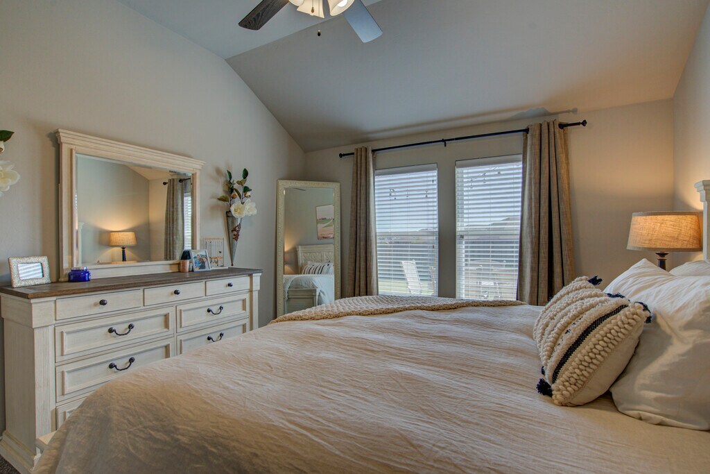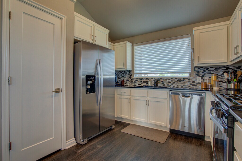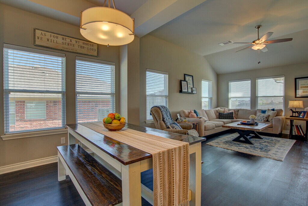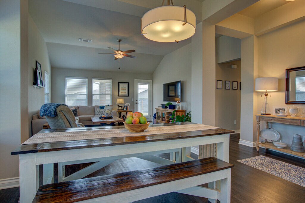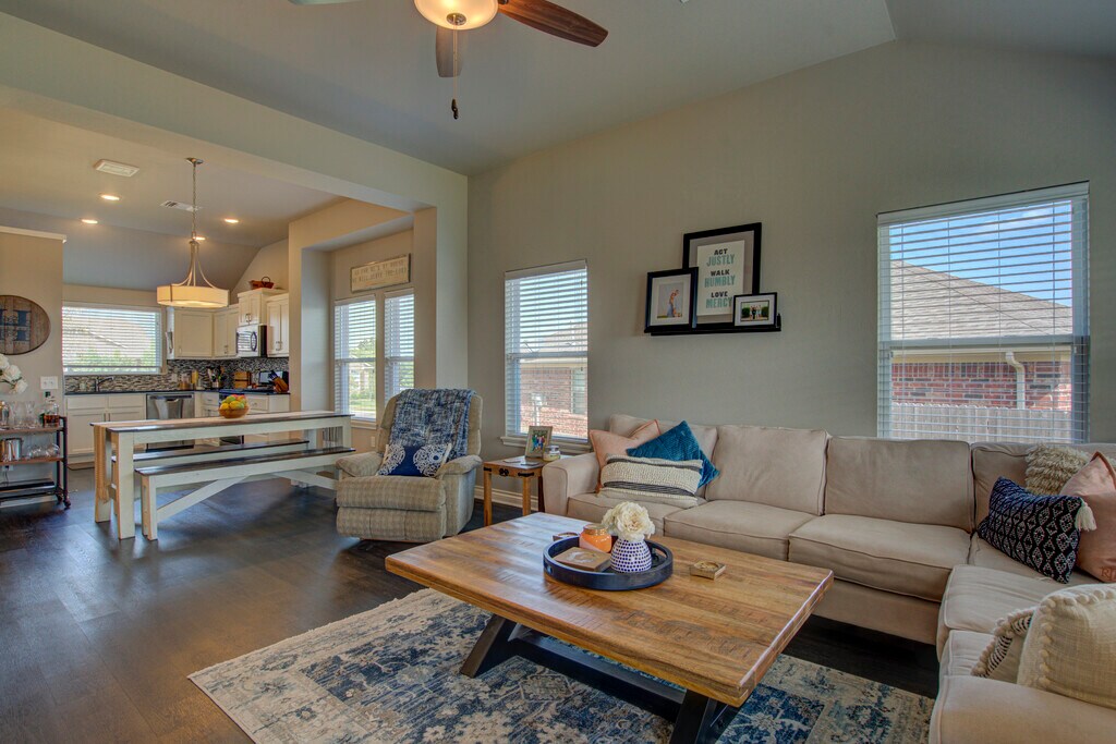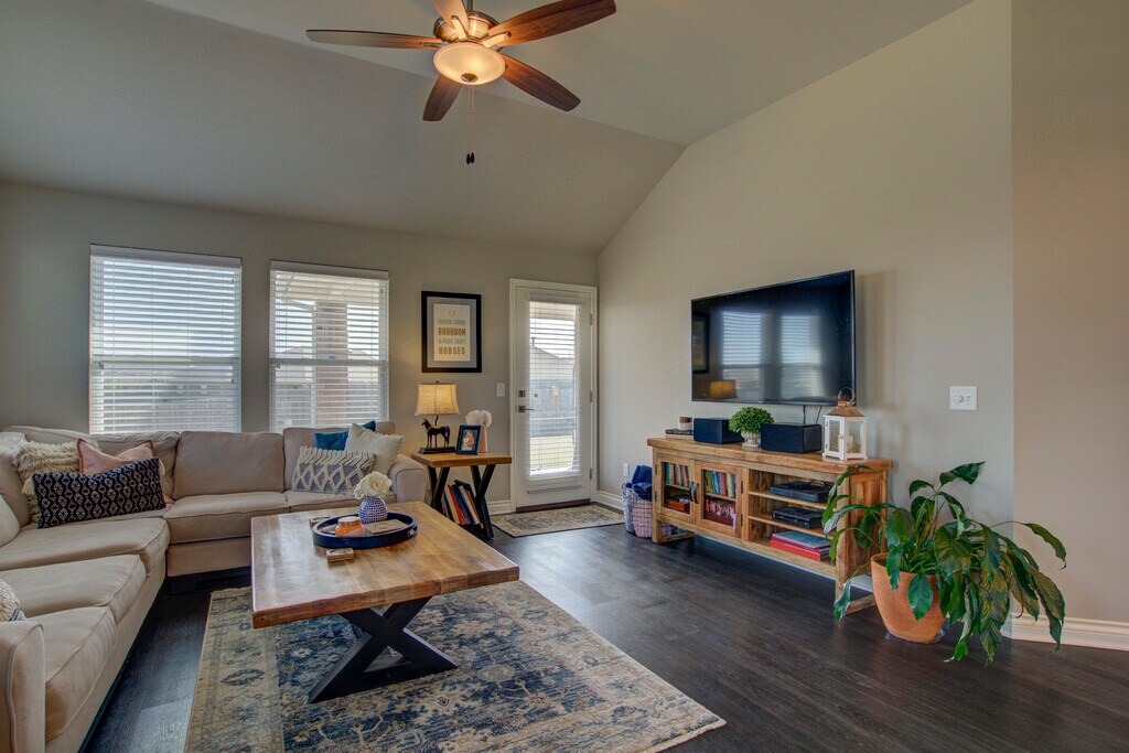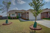 This 3 bedroom home offers a contemporary design and an open living/dining layout with an indoor utility room, including a new washer and dryer (optional)! Additionally, this home offers an outdoor covered patio with an extended section for evening meals under beautiful lights. The kitchen features stainless steel appliances including a microwave, gas cook range, refrigerator with ice and water dispenser in the door (optional), tile back splash and quartz counter tops. The two car garage has a built in storm shelter for peace of mind. The spacious guest bathroom has 2 entries for easier access from anywhere in the home. The home boasts an energy-efficient HERS score of 65, which guarantees low heating and cooling costs all year long! This home is move-in ready, don't miss this opportunity! Property will be available to view upon request.