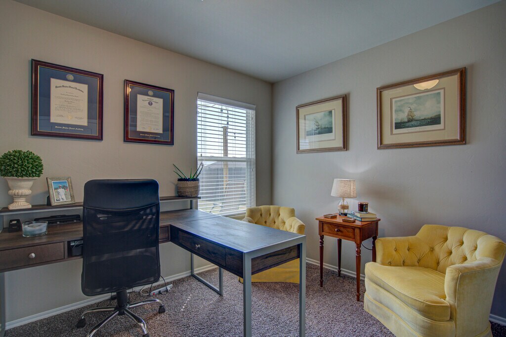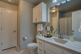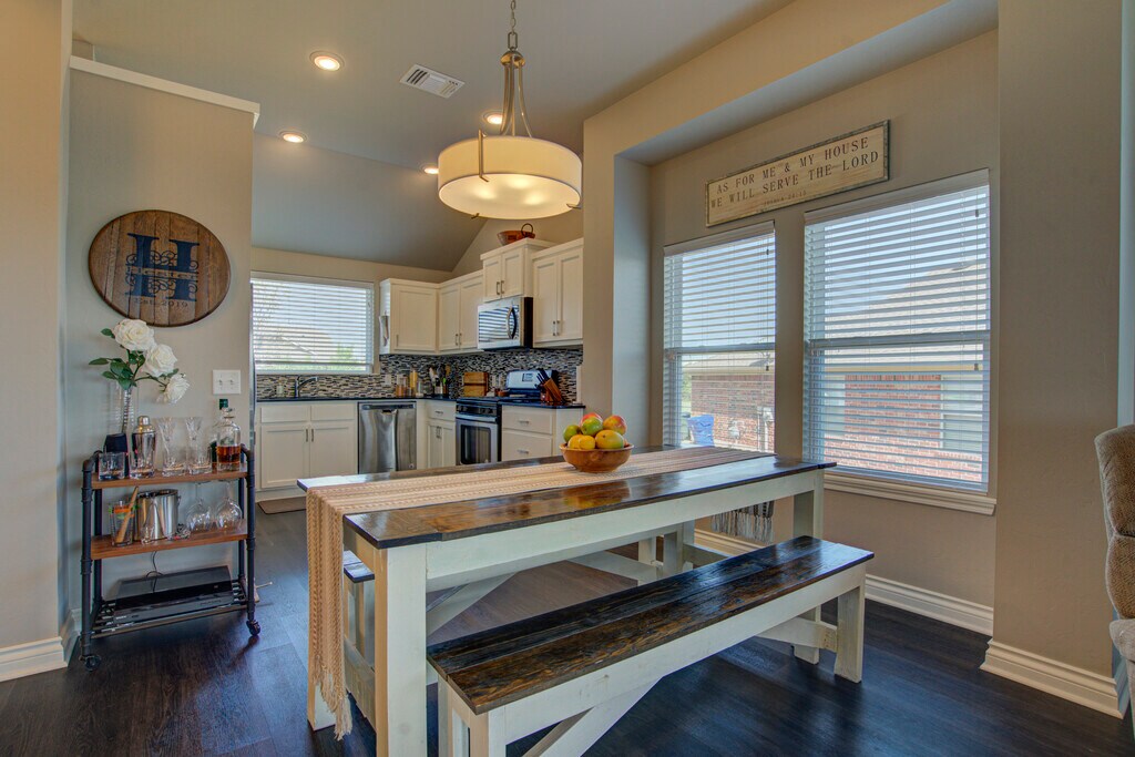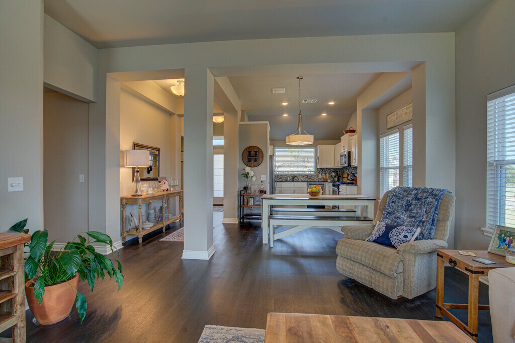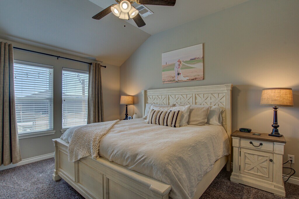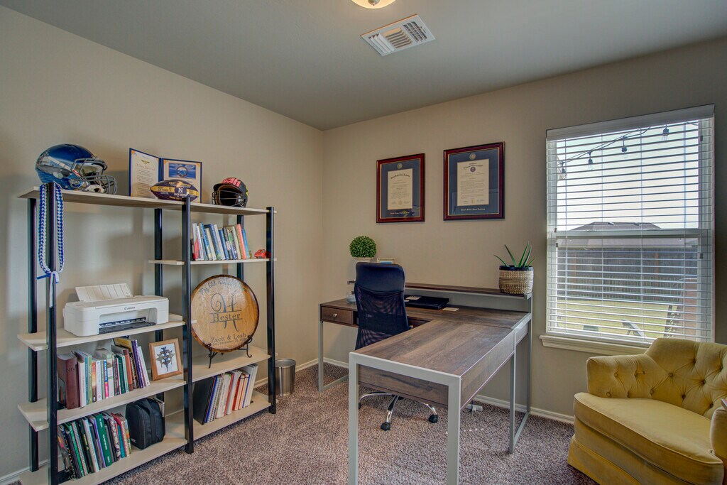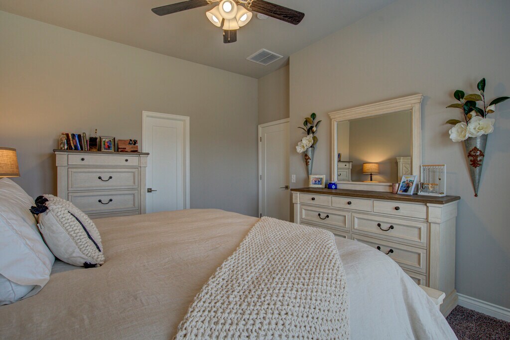 This 3 bedroom home offers a contemporary design and an open living/dining layout with an indoor utility room, including a new washer and dryer (optional)! Additionally, this home offers an outdoor covered patio with an extended section for evening meals under beautiful lights. The kitchen features stainless steel appliances including a microwave, gas cook range, refrigerator with ice and water dispenser in the door (optional), tile back splash and quartz counter tops. The two car garage has a built in storm shelter for peace of mind. The spacious guest bathroom has 2 entries for easier access from anywhere in the home. The home boasts an energy-efficient HERS score of 65, which guarantees low heating and cooling costs all year long! This home is move-in ready, don't miss this opportunity! Property will be available to view upon request.