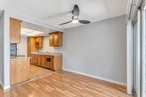 This charming 3 bedroom, 1 bathroom home features laminate flooring throughout, window coverings for privacy, a spacious dining area, and a cozy living room perfect for relaxing or entertaining guests. Step outside onto the balcony to enjoy the fresh air. Two car garage with a washer/dryer included, this home has everything you need for comfortable living. Don't miss out on this fantastic opportunity.