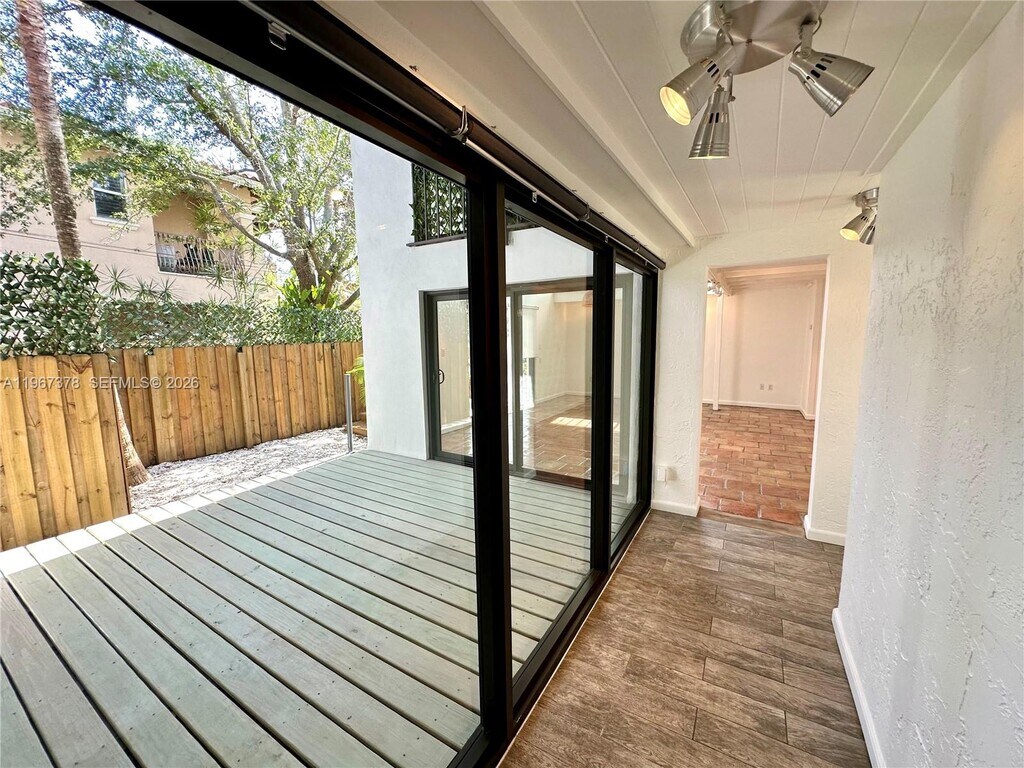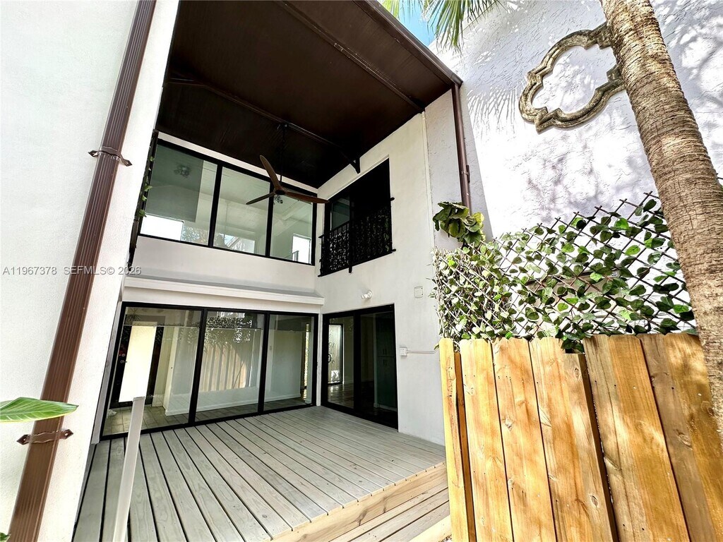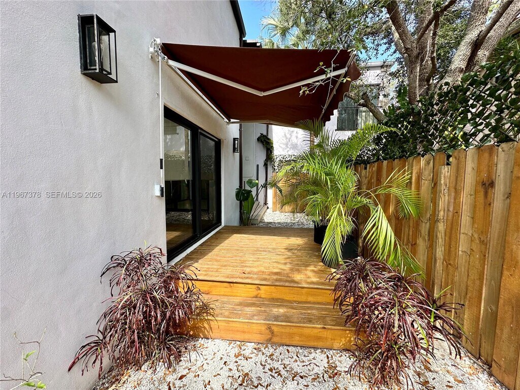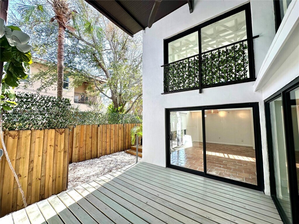 A special residence for a pleasant lifestyle in the heart of Coconut Grove. This lovely remodeled 2-bedroom 2-bathroom townhouse lives like a single-family home with an abundance of natural light. The first floor features tile flooring throughout, an open-concept kitchen with stainless steel appliances, washer and dryer, and a fully updated bathroom. The spacious dining room flows into an expansive living area with soaring volume ceilings. Step outside to three separate private decks, each surrounded by tropical landscaping creating serene spaces for entertaining, morning coffee, or intimate family gatherings. The second floor features carpeting throughout, a versatile loft with built-in desk and Murphy bed perfect for a home office, creative studio, or guest retreat; the two bedrooms share a modern Jack-and-Jill bath complete with dual vanities and a tub. Impact windows and doors provide peace of mind, while the fully fenced property with electric gate ensures added privacy and security. No pets. No HOA - rapid approval. Minutes to Coconut Grove’s dining, shopping, and entertainment. Ideally located close to Coral Gables, The Shops at Merrick Park, Brickell, Downtown Miami, and Miami International Airport. MLS # A11967378