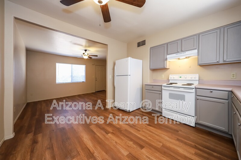 Move in on November 14th; current tenant is flexible if needed. **The home is being freshly repainted. The paint color may not be the same as the photos. Centrally located and move-in ready, this updated 2-bedroom, 1-bath home features a spacious living room, a dedicated dining area, and hard surface flooring throughout. Freshly painted with plenty of off-street parking, it offers washer/dryer hookups conveniently located in the hallway closet. The private rear yard is enclosed with a block wall for added privacy and includes additional shared outdoor space. Conveniently located near shopping, dining, the bus line, and the University of Arizona. An additional $25/month water charge applies