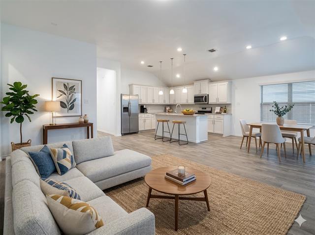 Step into this immaculate, move in ready home just south of Fort Worth. Beautifully maintained and thoughtfully updated, this inviting 3 bedroom, 2 bath residence welcomes you with a open floor plan featuring a stylish, modern kitchen that brings a bright, refreshed feel the moment you walk through the door. Light filled living spaces flow effortlessly into the kitchen and dining areas, creating an ideal setting for both everyday living and easy entertaining. The spacious primary suite offers a comfortable and private retreat, while two additional bedrooms provide flexibility for family, guests, or a home office. Outdoors, the generous backyard offers endless possibilities room for play, pets, or creating your dream outdoor living space. Even better, lawn maintenance is included, allowing you to enjoy the yard without the upkeep. Perfectly located within walking distance of Vivian J. Lincoln Library and J.A. Hargrave Elementary School, this home blends comfort, convenience, and value in one of Fort Worth’s most desirable neighborhoods. Come see today! ***LAWN MAINTENANCE INCLUDED***