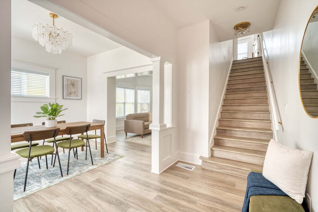 Feel at home in this spacious three-bedroom duplex located in a historic building in the NE Mississippi/Alberta District, known for its top restaurants, bars, and shops. This walker's paradise boasts a WalkScore® of 91/100, making it perfect for fans of great food, craft beer, and Portlandia vibes. The home features three bedrooms and one bathroom, beautifully remodeled while preserving original century-old woodwork and features. This beautifully remodeled duplex offers a cozy and bright living room with natural light, comfy couches, and a 50” LED flat-screen TV with Netflix. Enjoy fast WiFi for streaming, working, or browsing, and a fully equipped kitchen with new appliances and a spacious farmhouse-style dining table. Each of the three bedrooms is furnished with a plush queen-size bed for a restful night’s sleep. Experience easy and private access with the entire space to yourself and a lockbox key code for hassle-free check-in and check-out. If you have a car, on-street parking is available, though it may be limited during peak hours. For longer stays or guaranteed spots, there are nearby parking garages and lots offering hourly or daily rates. Portland also has several car-sharing services, such as Zipcar and Getaround, providing the flexibility of a rental car without the need for traditional rental agencies. Situated in a prime location often referred to as Foodie Row, this area is just a hop, skip, and a jump away from two of Portland's hottest streets, Alberta and MLK. The neighborhood is brimming with shops and restaurants, including a unique coffee roaster inside a double-decker bus. With vintage shopping, lifestyle boutiques, and novelty gift shops, you'll need a couple of days to explore everything this vibrant neighborhood has to offer. The area is highly walkable, with nearby cafes, restaurants, boutique shops, and parks capturing the unique charm of Portland. This property is a duplex with another apartment connecting to it. Quiet hours are between 22:00 and 8:00. Enjoy easy and private access with a lockbox key code for hassle-free check-in and check-out. Fast WiFi is available for streaming, working, or browsing, making it easy to work from home. [SI]