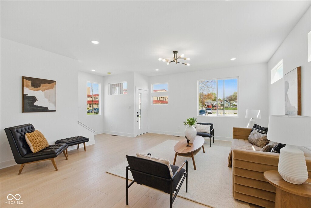 Step into luxury at 315 E Minnesota-a stunning new construction in Bates Hendricks that blends modern beach style with high-end design. This 3-bedroom,2.5-bath home includes a dedicated office & over 2,200 SF of thoughtfully crafted living space. From the moment you enter,soaring ceilings & oversized windows flood the open-concept main floor with natural light. The custom two-tone kitchen is a true showpiece: quartz countertops that extend seamlessly up the backsplash,a custom quartz shelf,gas stove,built-in pantry,& a navy center island that anchors the space. Gold & black accents add a sophisticated edge,all set against beachy white oak luxury vinyl plank flooring. Step outside to a private patio and fully fenced backyard-your own urban oasis. Upstairs,the primary suite offers a serene retreat with a spacious bedroom,a giant custom closet,& a spa-like en-suite bath featuring floor-to-ceiling tile. The upstairs laundry room is more than functional-it's beautifully designed with built-in shelving. A dedicated office provides quiet space for work or creativity,while a private balcony offers skyline views of downtown Indy. The 2-car garage includes a roughed-in bonus room above-built with proper footings,joists,& 5' knee walls-ready to finish into a guest suite,studio,or income-producing space. This home is more than move-in ready-it's a lifestyle upgrade. It is walkable to local coffee shops,restaurants,and the cultural energy of Fountain Square. Don't miss your chance to own a custom-built home in one of Indy's most vibrant neighborhoods. Based on information submitted to the MLS GRID as of [see last changed date above]. All data is obtained from various sources and may not have been verified by broker or MLS GRID. Supplied Open House Information is subject to change without notice. All information should be independently reviewed and verified for accuracy. Properties may or may not be listed by the office/agent presenting the information. Some IDX listings have been excluded from this website. Prices displayed on all Sold listings are the Last Known Listing Price and may not be the actual selling price.