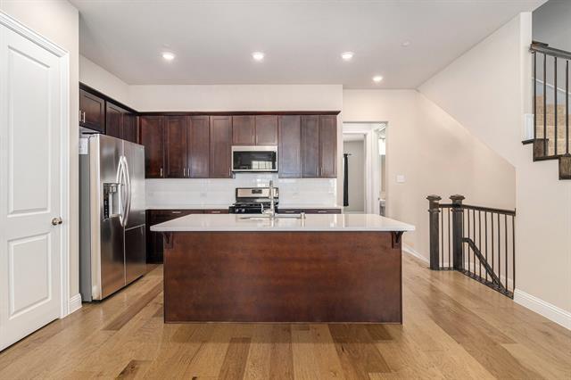 Need privacy, convenience, and style? Then look no further! This split-level townhome offers it all. The ground-level entry provides a bedroom, full bathroom with a walk-in shower, laundry room, storage closet under the stairs, and access to the attached two-car garage. Level 2 hosts the half bath, an open concept living room and kitchen with a breakfast bar island, stainless appliances including a dishwasher, gas cooktop, oven, microwave, and refrigerator, and the master bedroom with an ensuite featuring dual vanities, separate toilet closet, walk-in shower, and a large walk-in closet. Level 3 is the 3rd bedroom which could be a game room or office with access to a spacious covered outdoor balcony, and the 3rd full bath complete with a walk-in shower and linen closet. Located near the border of Lewisville and The Colony. Near Lake Lewisville, NFM shopping, an abundance of fun dining, entertainment opportunities, and lifestyle resources with quick access to major roadways.