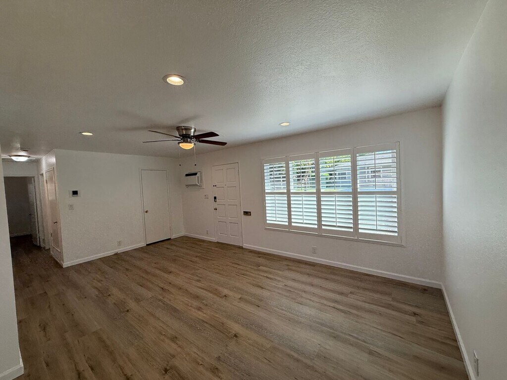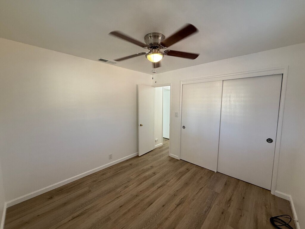 Attached two-bedroom townhome unit located near downtown Modesto! Be sure to check out the video tour on our website and YouTube channel. This unit includes two bedrooms, one full bathroom and approximately 903 square feet. Updated luxury vinyl floors throughout the entire unit. Fresh interior paint. Kitchen is equipped with an electric range, built in oven and free-standing fridge. Freshly painted cabinets, granite counters and stainless-steel sink. Bathroom has matching luxury vinyl plank floors, large vanity and tiled shower over tub. Bedrooms are equipped with ceiling fans/lights. Attached one car garage with automatic opener and laundry hook ups. Private backyard area. Water and sewer are included! Central heating and air conditioning. Tenant is responsible for all utilities (except water/sewer) and maintaining their backyard. Pets are subject to approval with modified terms. $1895 monthly rent with a one-year lease. $1895 security deposit. $50 non-refundable application fee per adult. Please visit our website at or call for more details. Five Star Property Management Lic# 01 Wylie dr Modesto, CA 95355 office fax info@