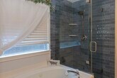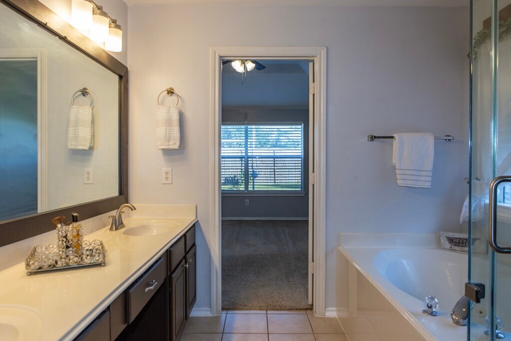Welcome to this nice home with high ceilings,an oversized backyard,and an updated kitchen. The dining room boasts tile flooring and leads to the remodeled kitchen with soft close cabinets,quartz countertops,and a gas range. The spacious living room features soaring ceilings,a gas woodburning fireplace,and opens up to the kitchen and breakfast area. The downstairs primary bedroom offers plenty of natural light,a jetted tub,remodeled shower,and double sinks in the en-suite bath. Upstairs,you'll find a game room and two nicely-sized bedrooms with good closet space. The backyard is perfect for playsets,outdoor kitchen,and maybe even a pool. MLS# 89442366