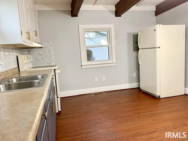 Come take a look at this charming 2–3 bedroom cottage. The living area, bedroom, and kitchen feature exposed beams, laminate flooring (no carpet), and plenty of natural light. The eat-in kitchen offers abundant cabinet space along with a stove and refrigerator. The primary bedroom is spacious, and there is a separate office area that could also serve as a nursery or additional bedroom. The home includes one full bath with an updated vanity and original tile flooring, plus a washer and dryer for added convenience. Outside, you’ll find a driveway that accommodates two cars. Tenant is responsible for all utilities and lawn care.
