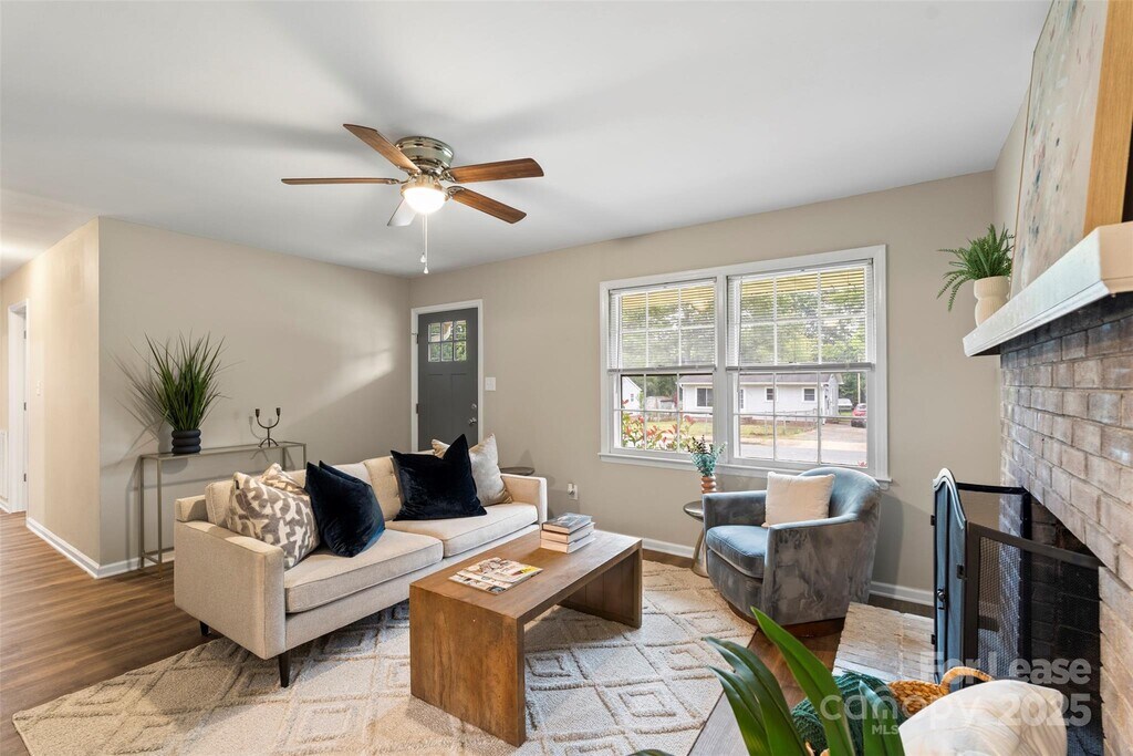 Charming Ranch home with no HOA offering 3 bedrooms and 1 full bathroom! This home features an open floor plan with stylish vinyl plank flooring and neutral paint throughout the main living areas. The light-filled living room includes large windows and a cozy woodburning fireplace,creating a warm and inviting atmosphere. The spacious dining area flows seamlessly into a well-appointed kitchen with abundant cabinetry,ample counter space,stainless steel appliances,and a dedicated pantry. The three bedrooms are all generously sized and can be used in a multitude of ways offering great flexibility and useability. Enjoy the outdoors in the large backyard—perfect for relaxing,entertaining,or gardening. A wonderful opportunity for one-level living with a thoughtful layout and functional upgrades throughout! Great location with easy access to I77 and plenty of shopping,restaurants and entertainment close by!