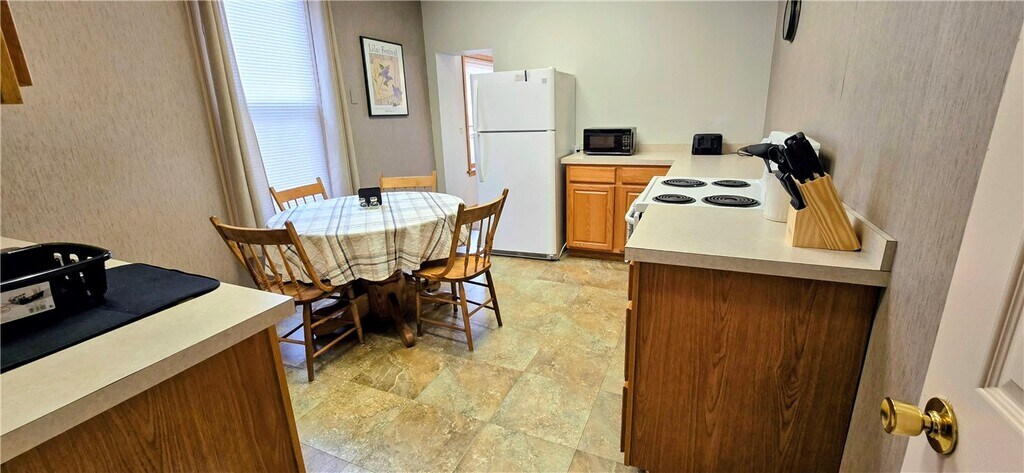 This impeccably maintained,upscale triplex is situated on a desirable corner lot and offers convenient off-street parking in a pleasant neighborhood. You will appreciate the easy access to shopping and dining,along with the generous space and comfort typically associated with a single-family home. Unit Details: Downstairs Apartment (Unit 1: $2500/m): Features central air conditioning,two spacious bedrooms,an updated kitchen,a full bathroom,a dedicated laundry room,and a large living room with cathedral ceilings. Oversized windows flood the space with natural light. A convenient vestibule at the entrance provides storage for outerwear. Upstairs Apartment (Unit 2: $2250/m): Accessed through an original foyer with raised panel wainscoting and a hidden closet under the staircase. This unit includes two spacious bedrooms,an entry hall,a large living room,an updated kitchen with a private laundry room,and original built-in cabinetry. The bathroom has been beautifully remodeled,preserving the original tiles and fixtures. Basement Apartment (Unit 3: $1250/M): A nicely updated studio apartment.